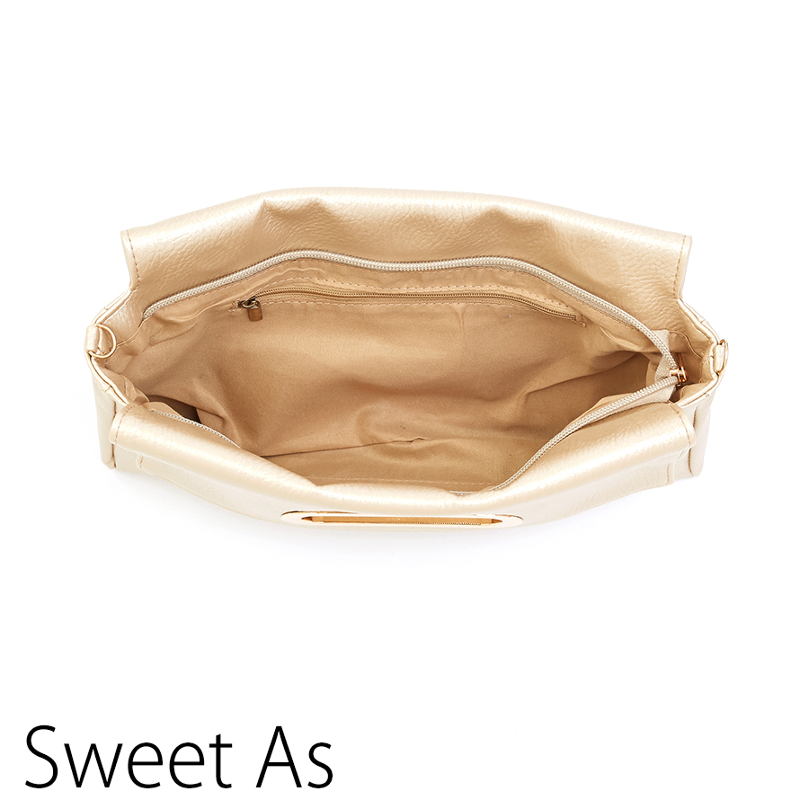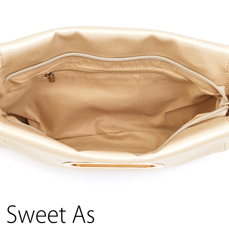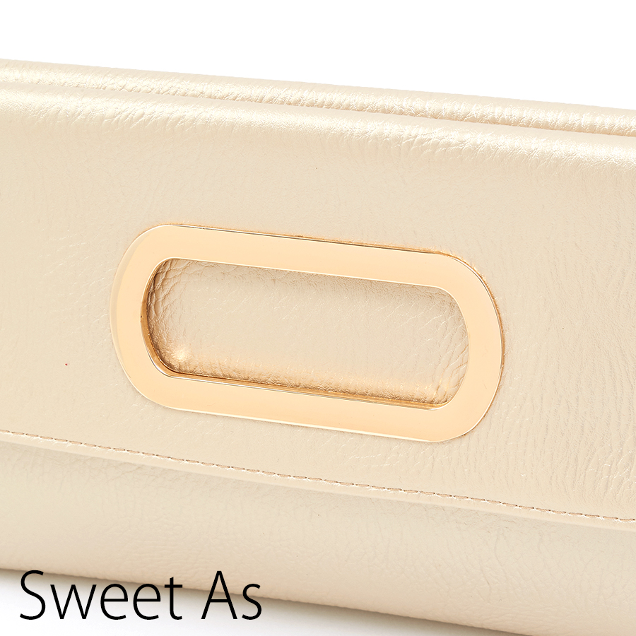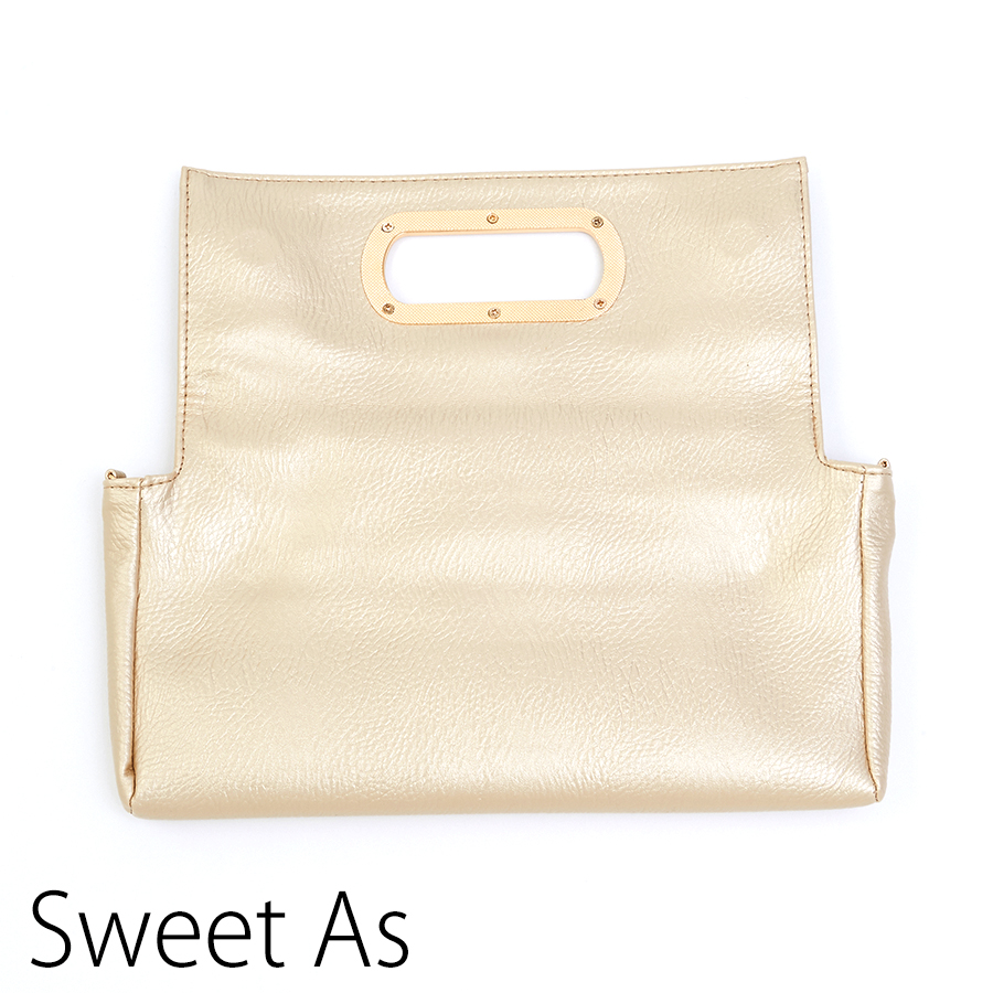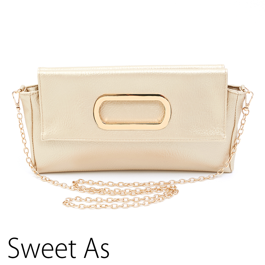 ★スタッフコメント★エナメルの光沢がクールな印象のフェイクレザーバッグ。上部を折り返して、クラッチバッグとしてご利用頂く他、ゴールドリングを取っ手としてトートバッグとしてご利用頂くことも可能です。上部先端にマグネットが埋め込まれているので、折り返してもスマートにご利用頂けます。取り外し可能なチェーンを付ければショルダーバッグになります。