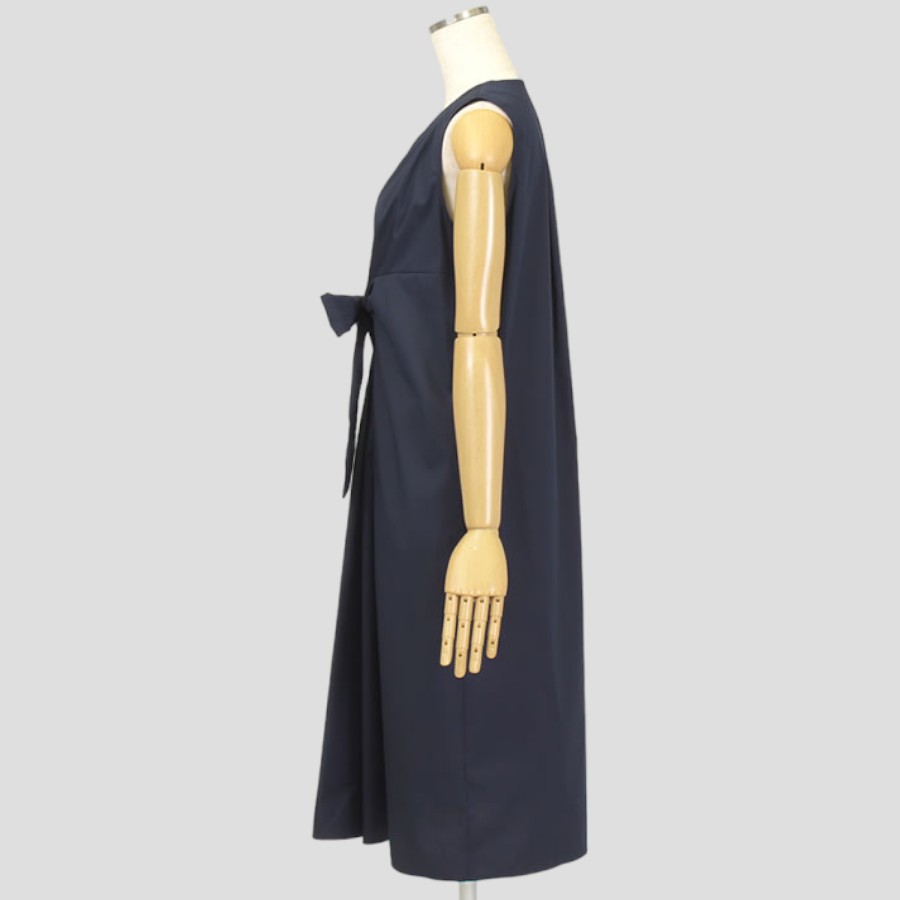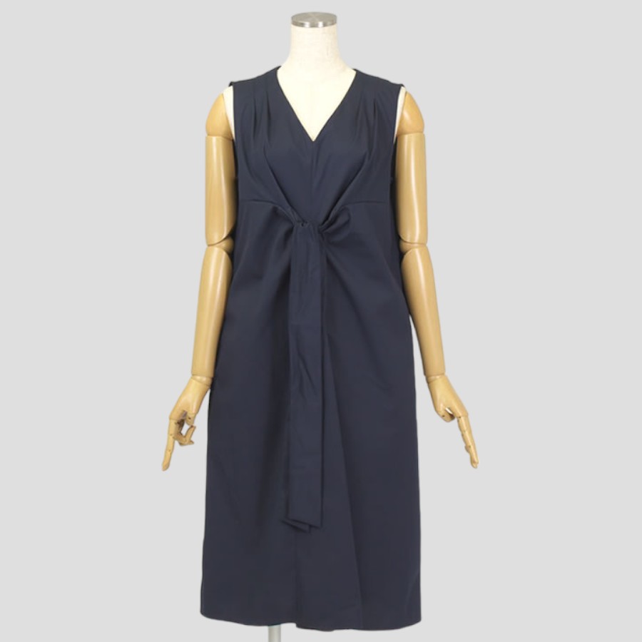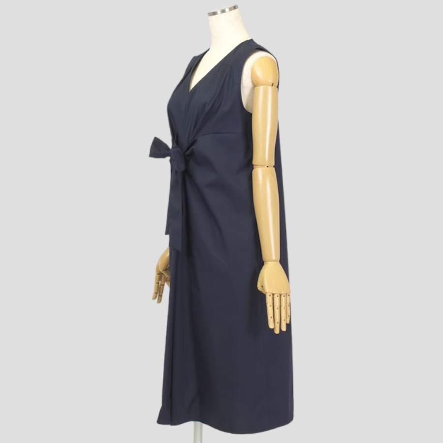ネイビーでシンプルながらも胸元のVカットと中央で結ぶ大きめのリボンが素敵なデザインでした。軽くサラッと着心地も良かったです。仕事はもちろん、羽織を変えて食事など様々な使い道がありました。