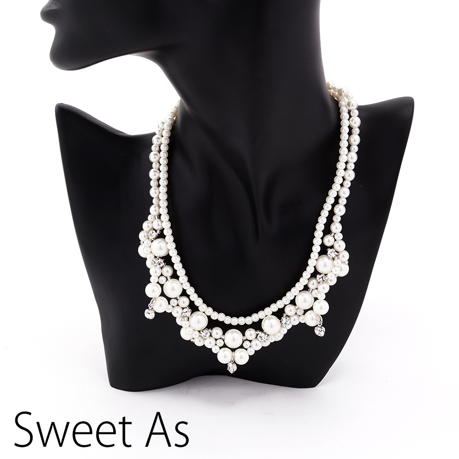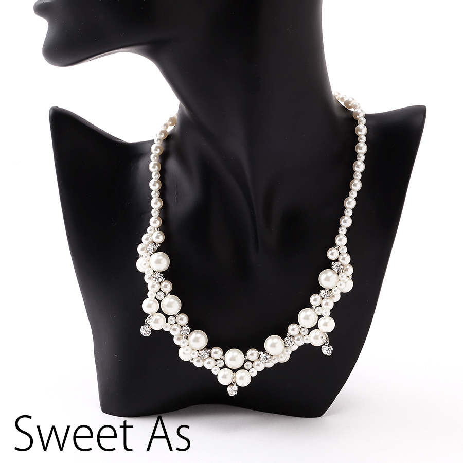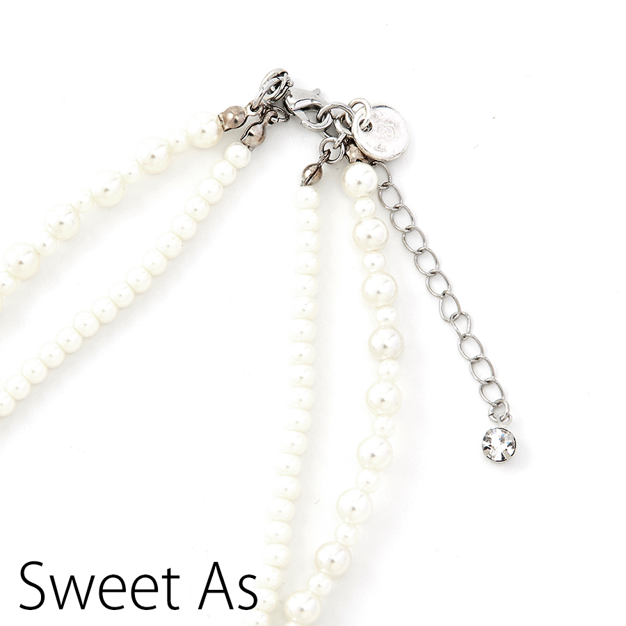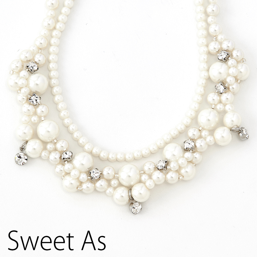 ★スタッフコメント★パールの間に光るビジューが目をひくネックレスです。大きすぎないパールで上品な印象に。立体感のある作りで3か所にあるビジューがキラキラ揺れるのもポイント。2連のネックレスは別々にお使い頂くことも可能です。※こちらはイミテーションパールになります。