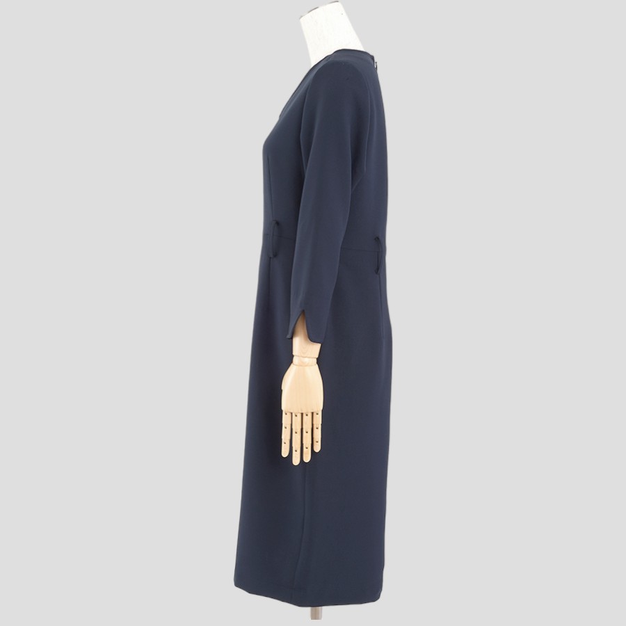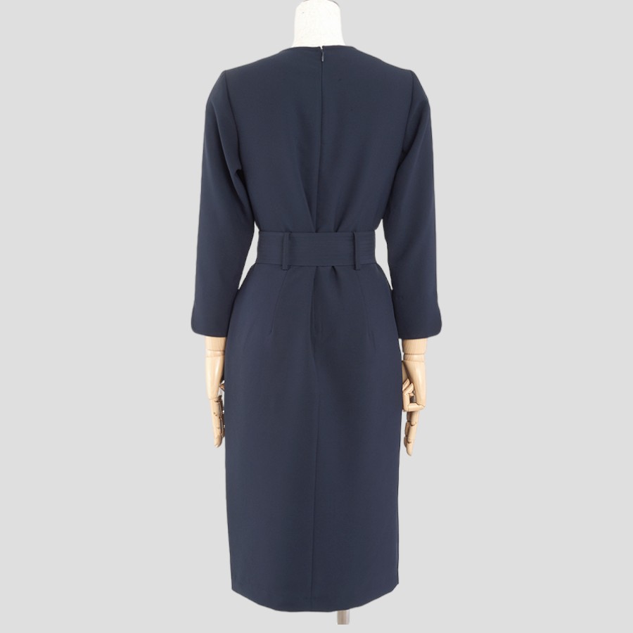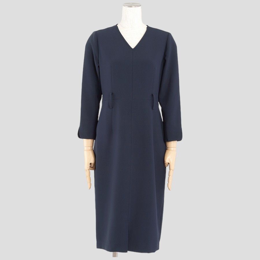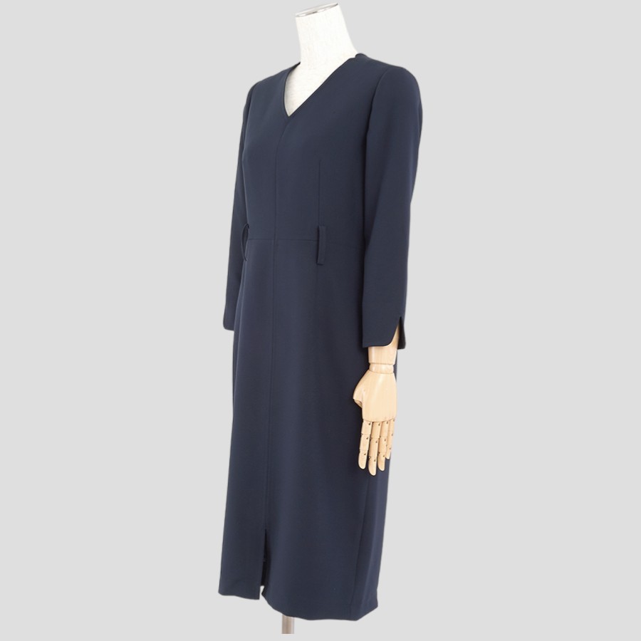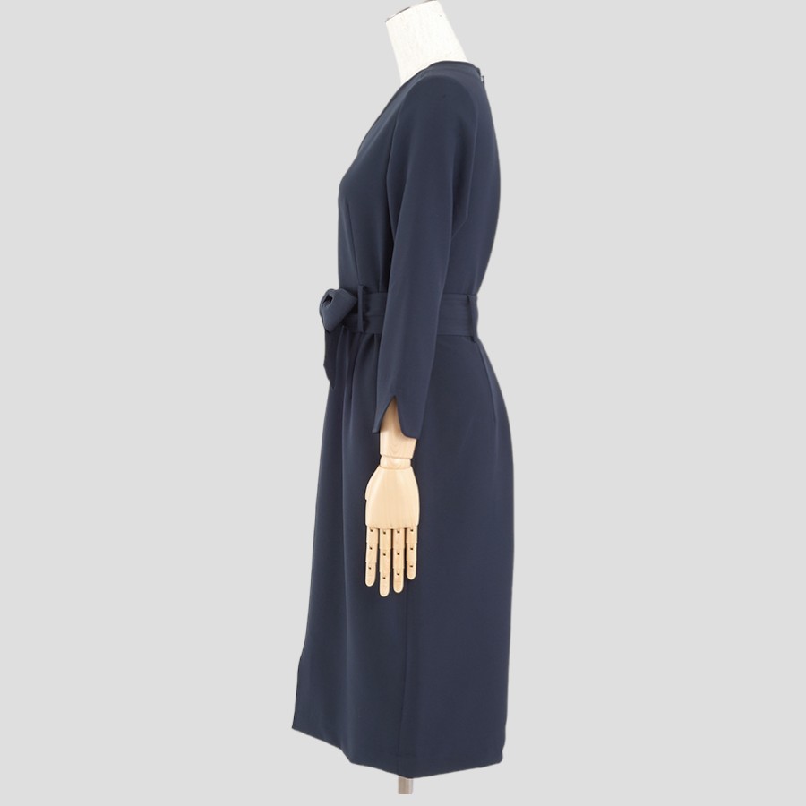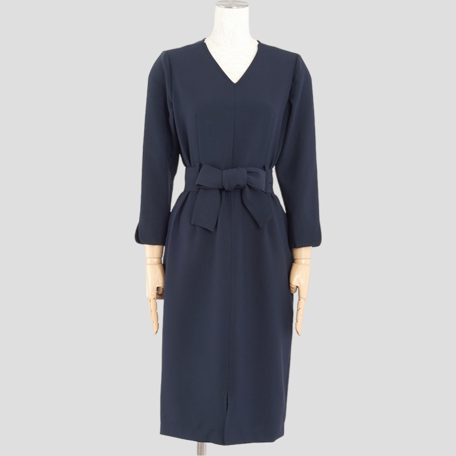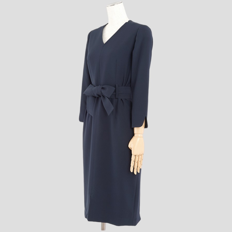 ウエストマーク Vネックフロントスリットワンピース(Lサイズ / ミッドナイトブルー / DoCLASSE(ドゥクラッセ)) [付属品 1点:リボンベルト]