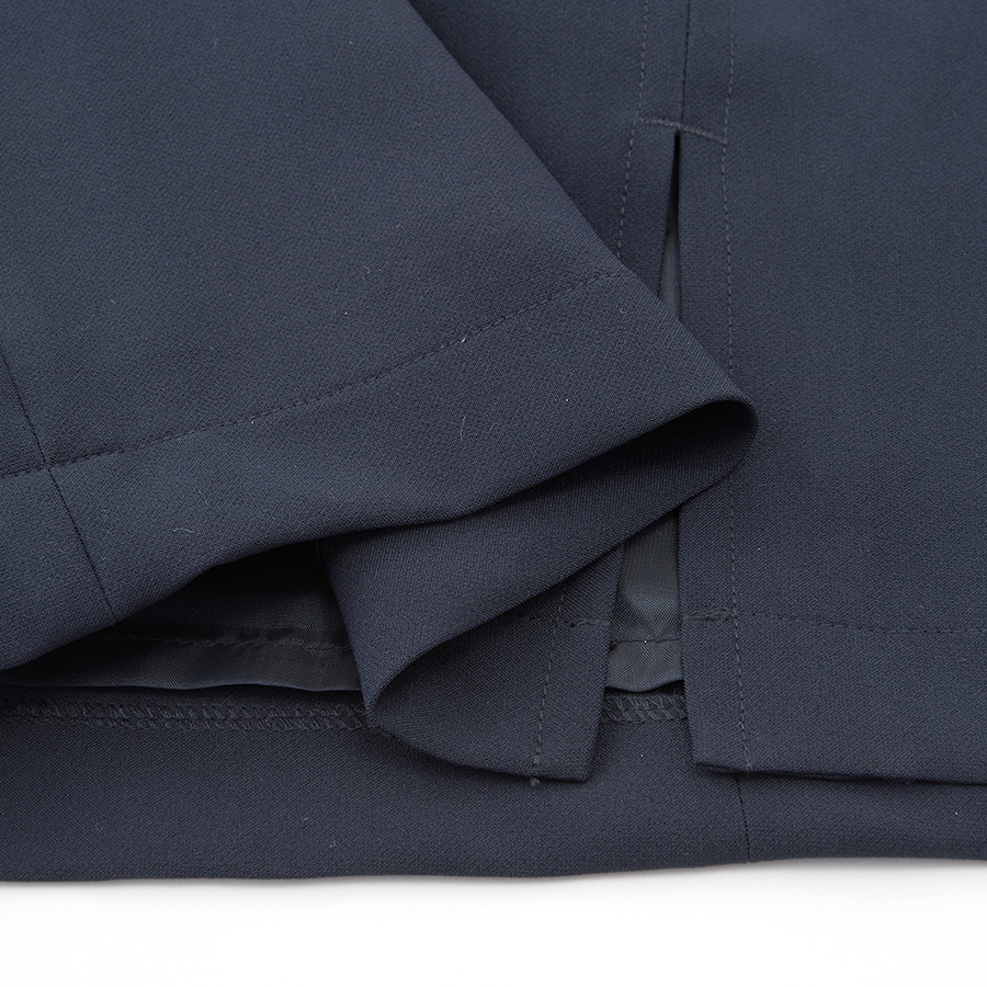 しわになりにくく、また裾のセンターや袖口にスリットが施されているので、ストレスフリーで着て頂けます。