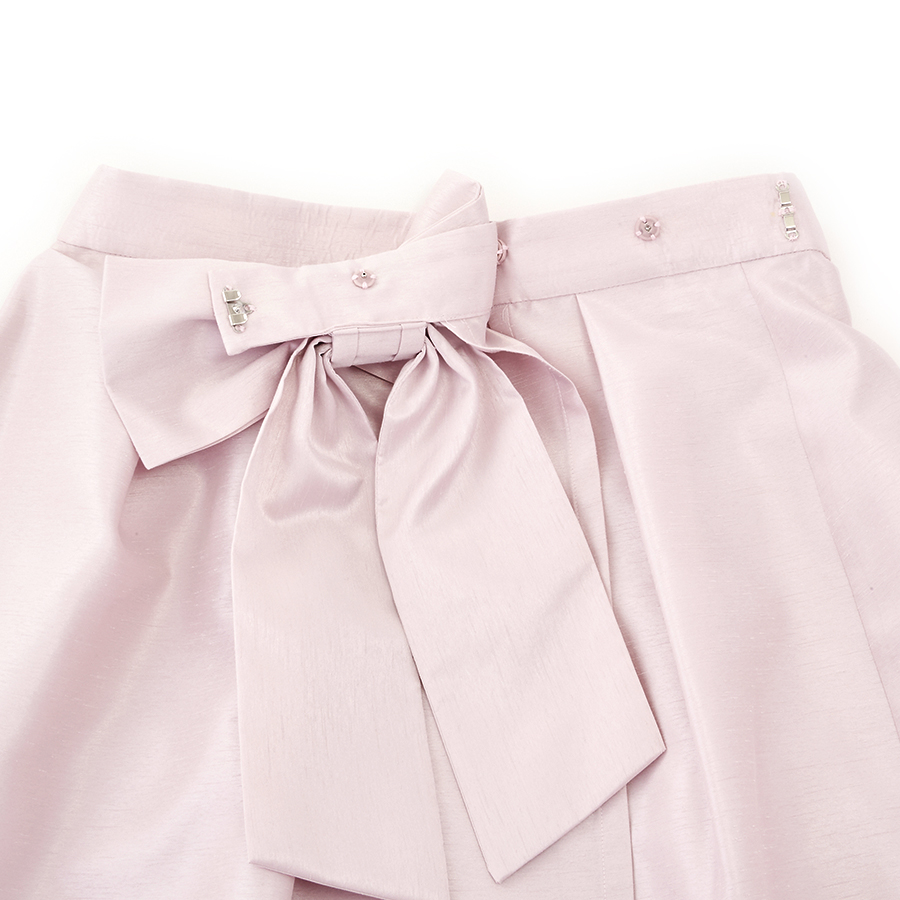 上半身部分やカバースカートは光沢のあるシャンタン生地となっています。