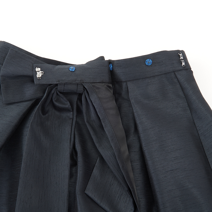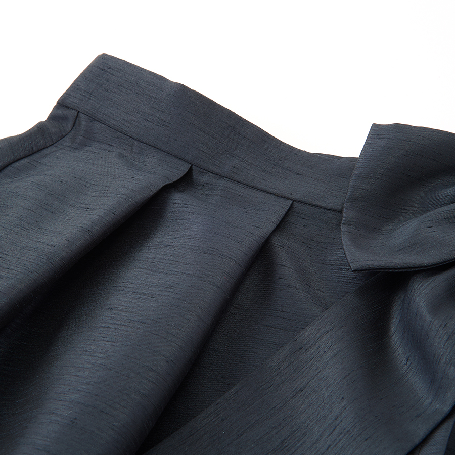 上半身部分やカバースカートは光沢のあるシャンタン生地となっています。