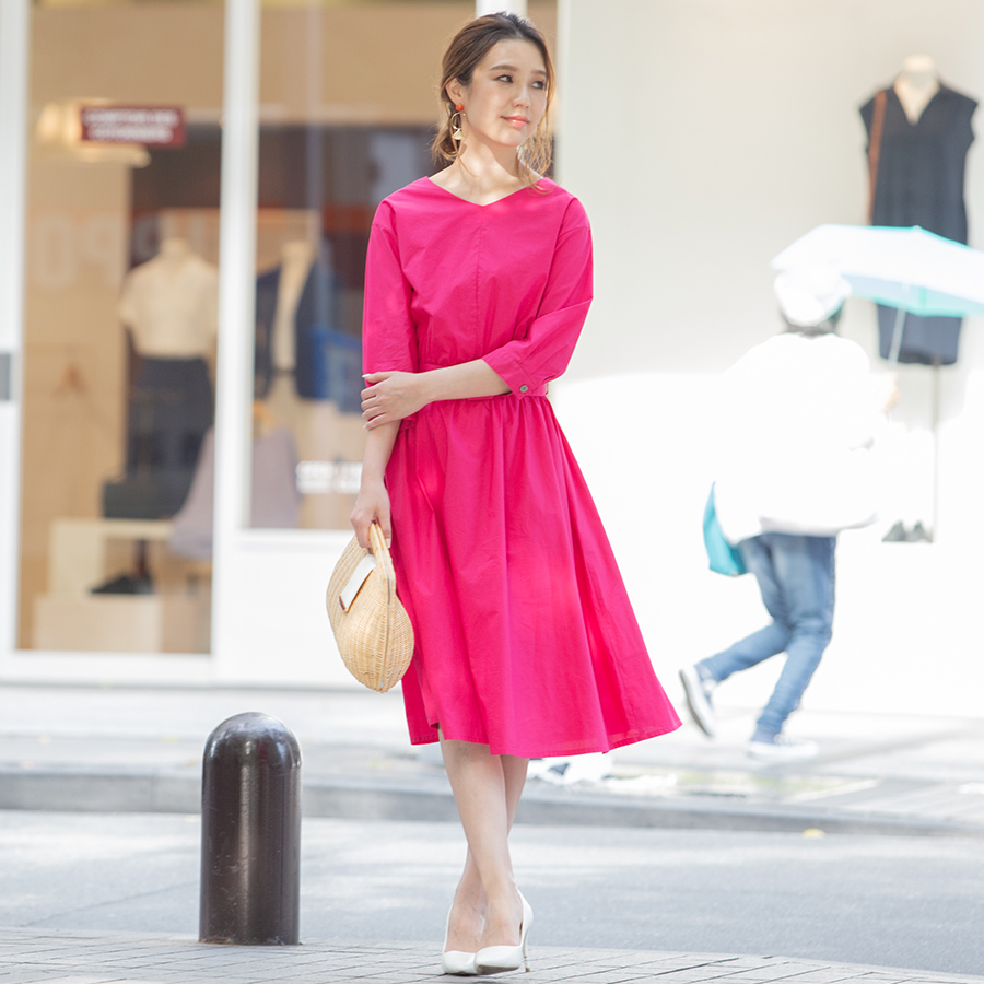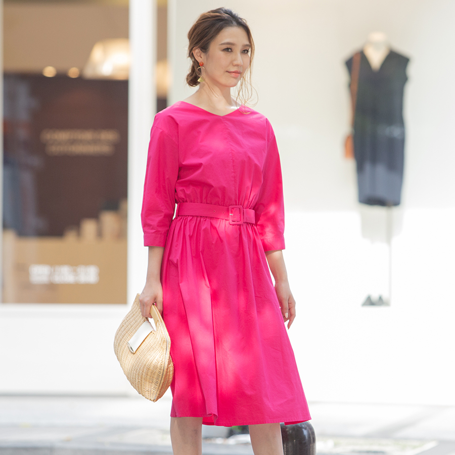ウエストはギャザー仕立てで、メリハリのある綺麗なラインを実現。上品で華やかな印象に仕上げます。