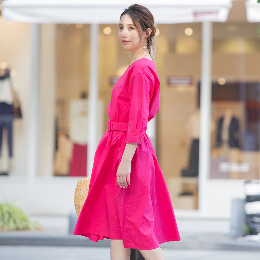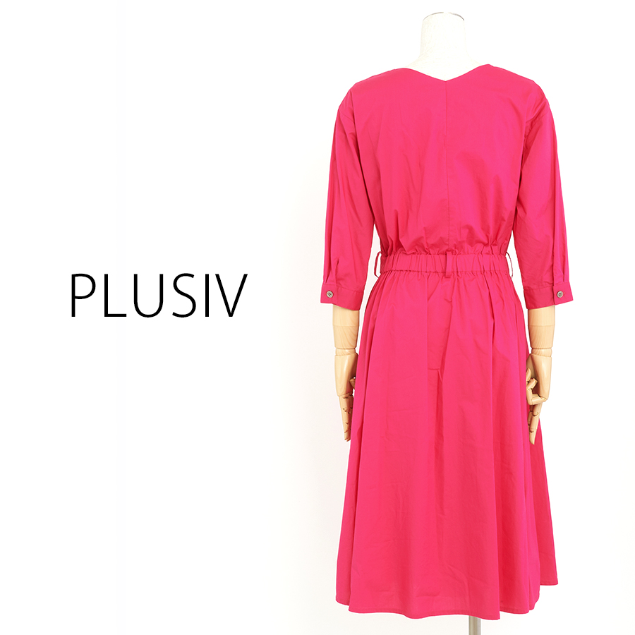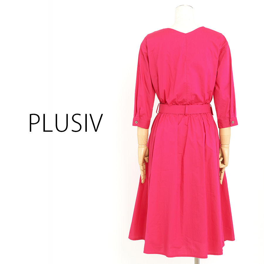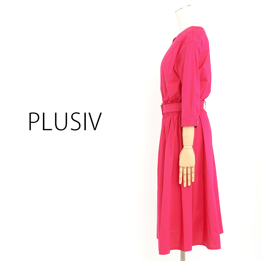綿タイプライターベルト付きワンピース(Lサイズ / ピンク / PLUSIV(プラッシヴ)) [付属品 1点:ベルト]