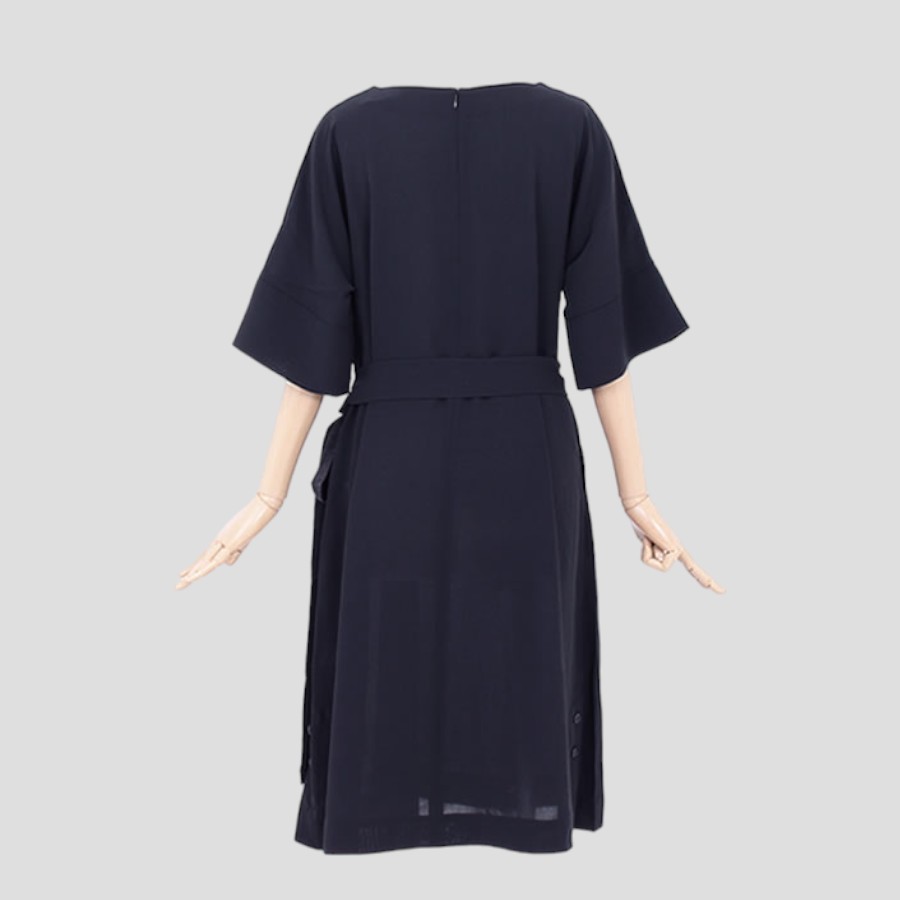 シンプルな中にもちょっとしたデザイン性があり、地味になりすぎずに着られます。ウエストマークでスタイルも良く見えます。