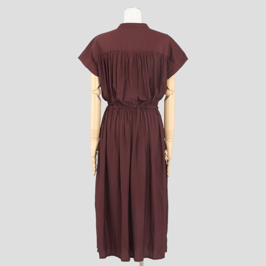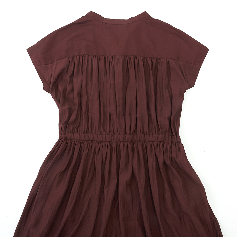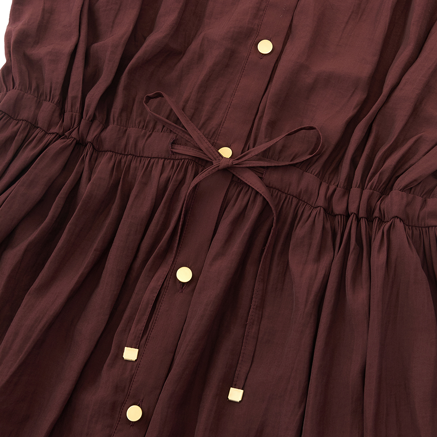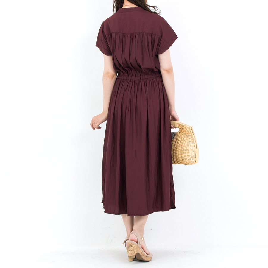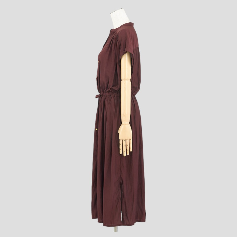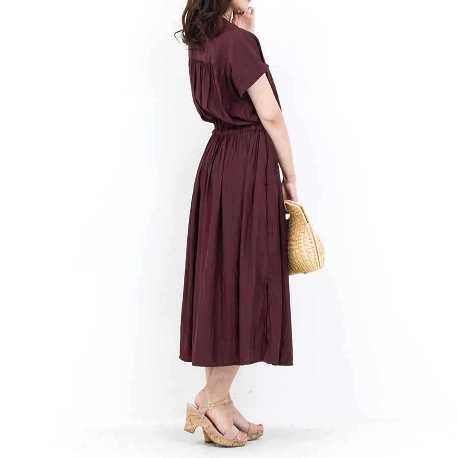 ★スタッフコメント★落ち着いた色合いで晩夏にぴったりなワンピース。マットサテン生地で滑らかな肌触りです。薄手で軽い素材なので、暑い時期でも快適に着て頂けます。シワ加工でこなれた印象に。ダークトーンにゴールドボタンがきらりと光ります。肩口とウエストのギャザーで立体感をプラス。ワンピースとしてはもちろん、前ボタンを開けて羽織りものとしてもご利用頂けます。 ※着用モデル:163cm 着用サイズ:M ※小物はレンタルに含まれません。※ロング丈となっておりますので、サイズ詳細をご確認ください。