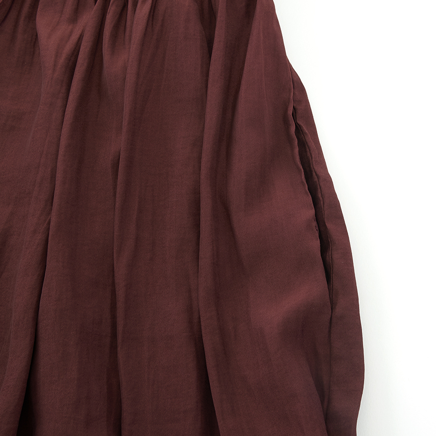 生地も軽く、サラサラしていて涼しいです。ゆったり着れます。ボルドー色なので残暑の残る初秋にもオススメです。