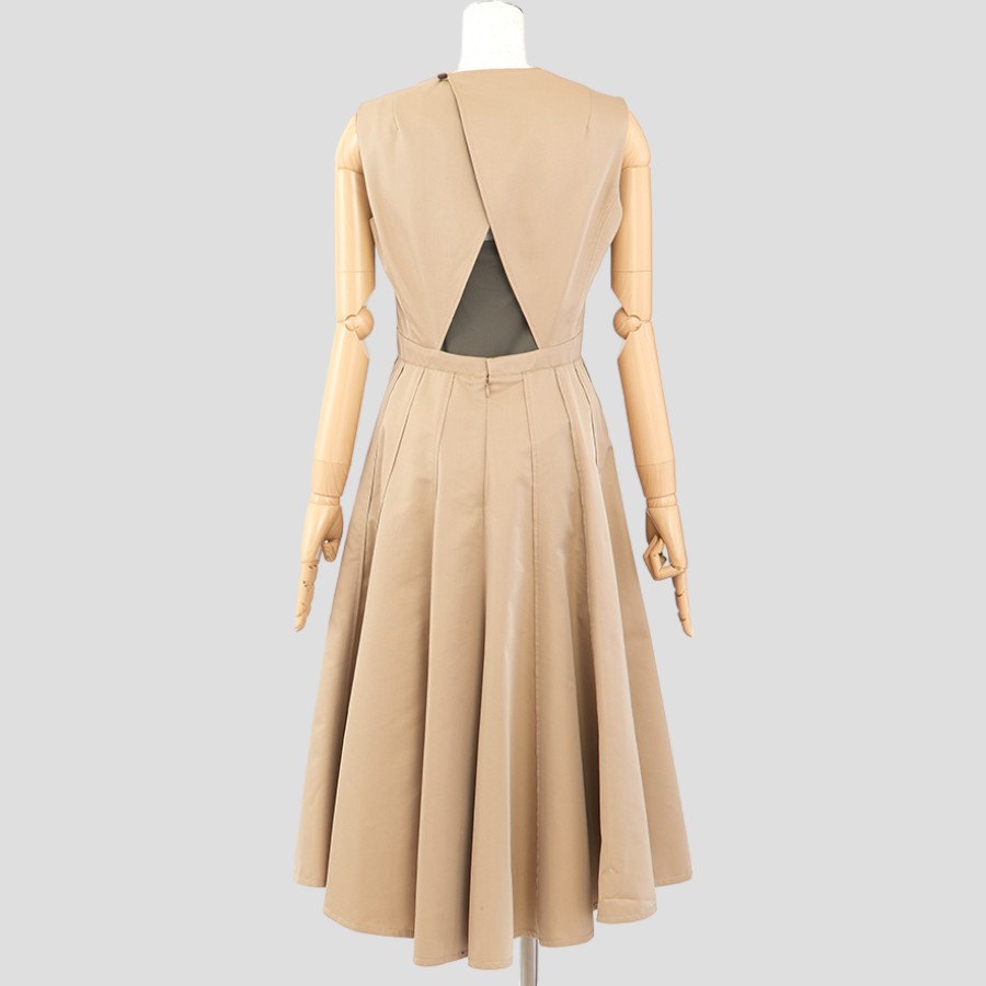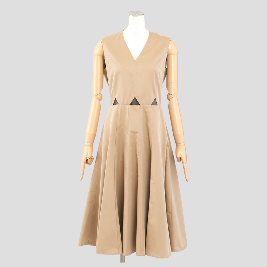 パネルフレアドレス(Mサイズ / ベージュ / Arobe(アローブ)) [付属品 1点:インナーキャミ]