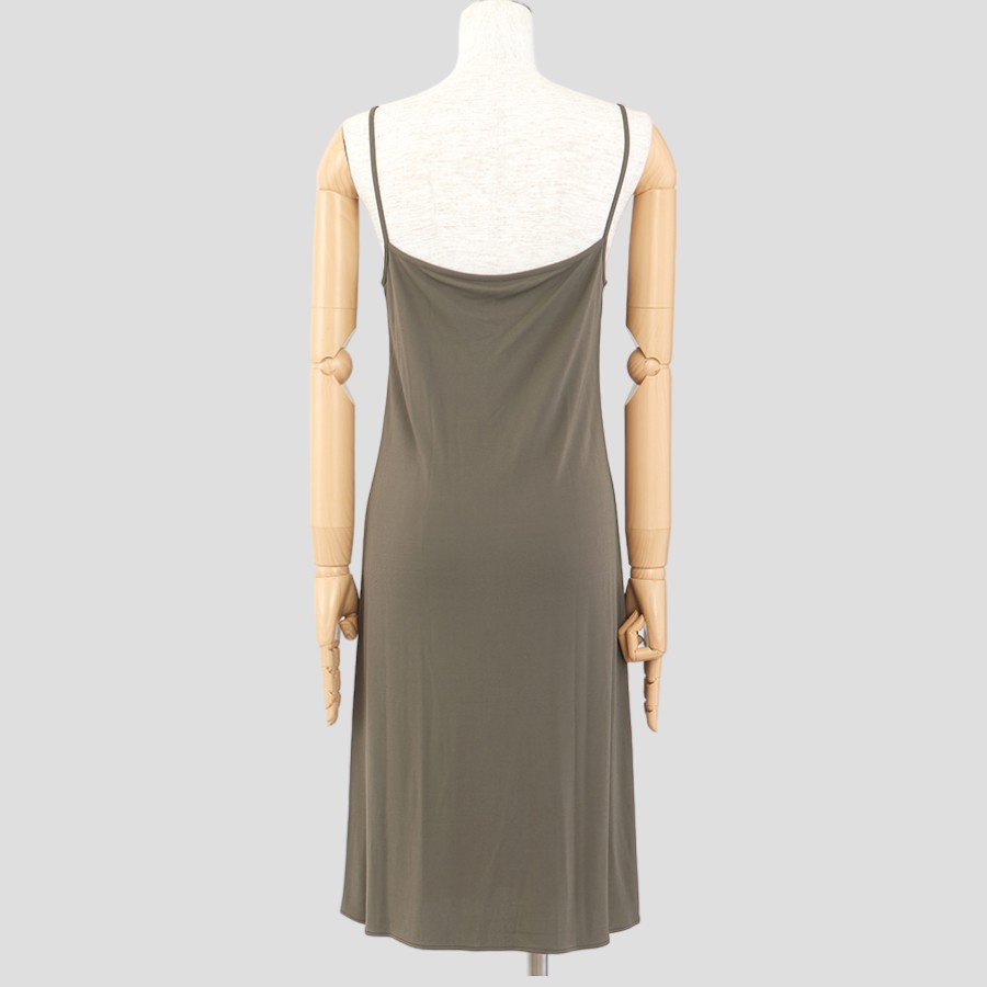 他の方のレビューであった通り、キャミソールは長いので肩紐で結んで利用しました。シルエットも綺麗で周りからも褒められました。