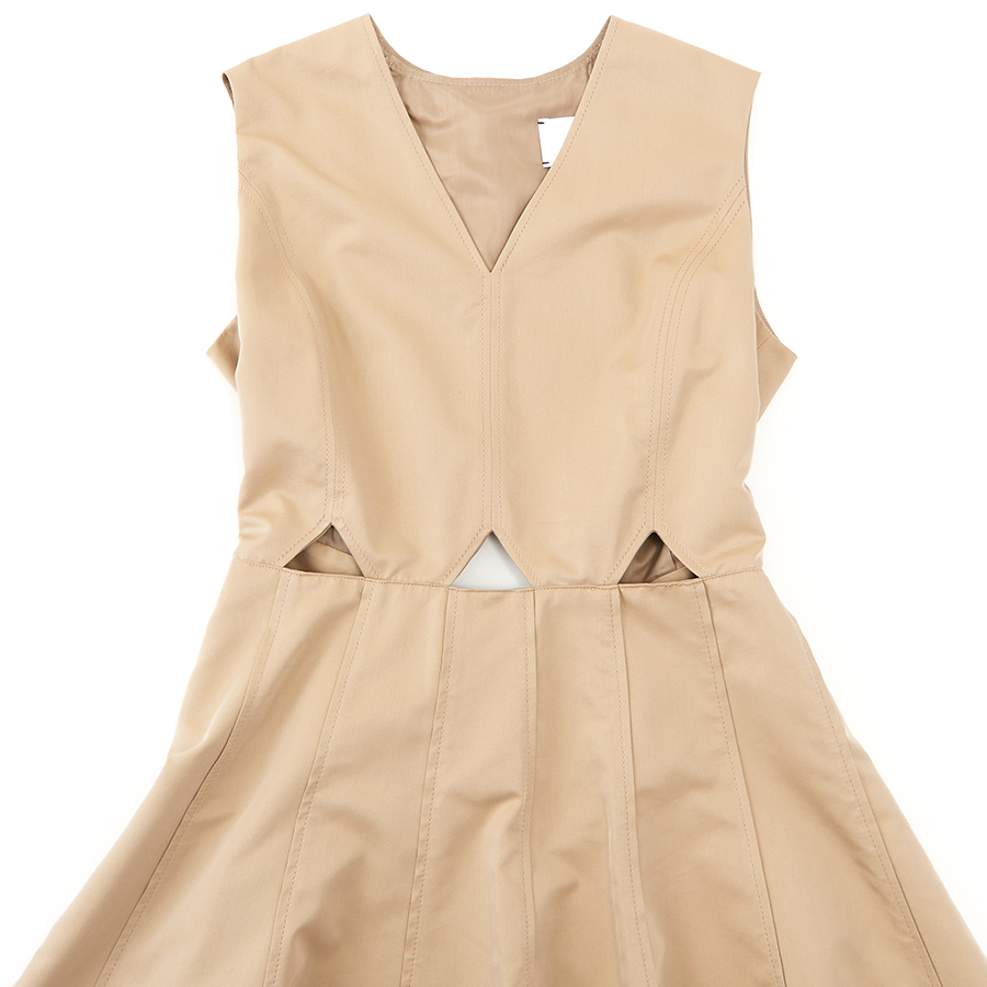 ウエスト部分のカッティングが大胆な一着。中に合わすインナーで遊び心が刺激され、遊び心が満たされる。10~20代はこのまま着て、セクシーさを出すのもあり!素材とデザインがカバーしてくれるので、ビッチ感は出ません!
