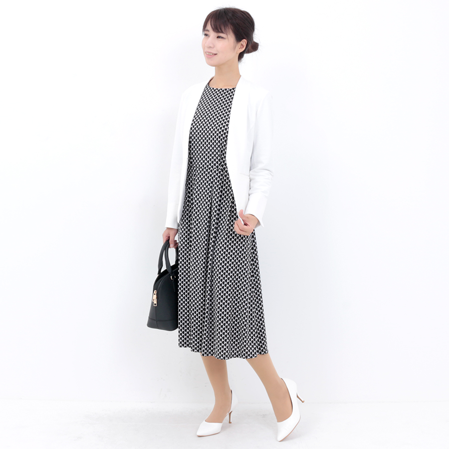 シンプルなラインでジャケットにも合わせやすいワンピース。