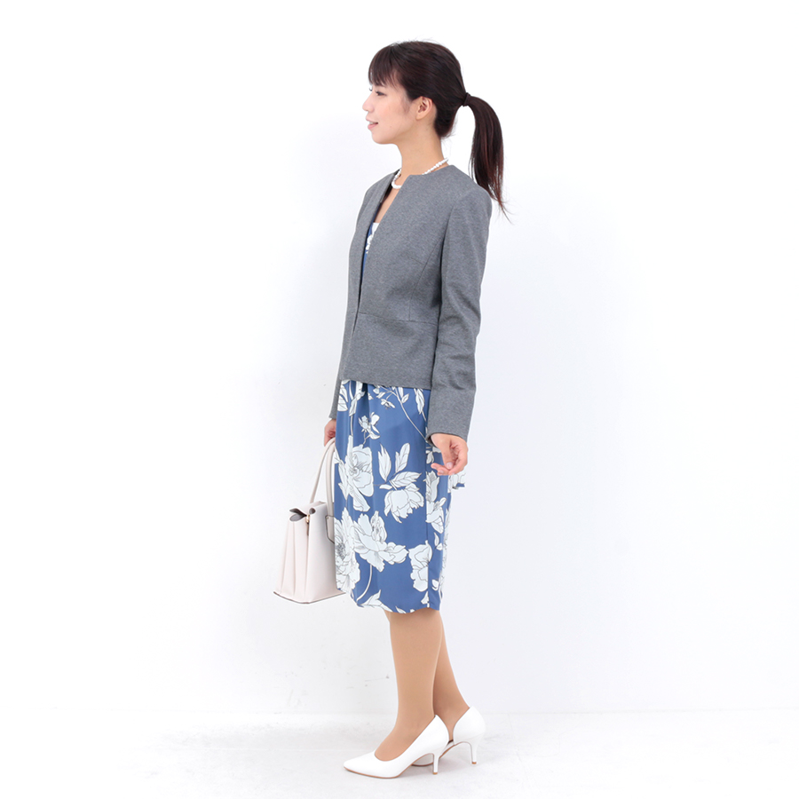 ビジネスシーン活躍する美シルエットのノーカラージャケット。