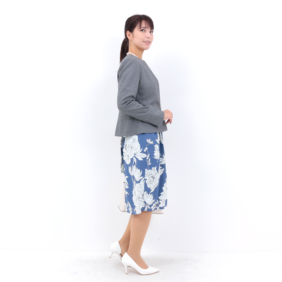 パンツにもスカートにも合わせやすい丈感となっています。