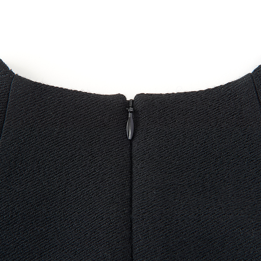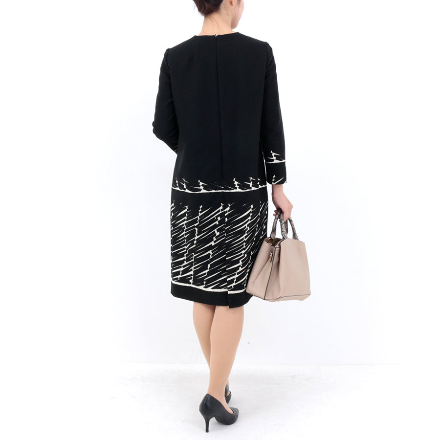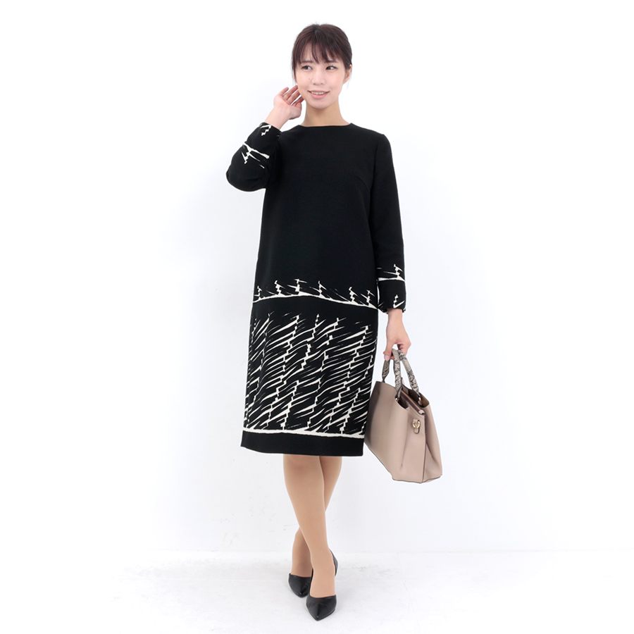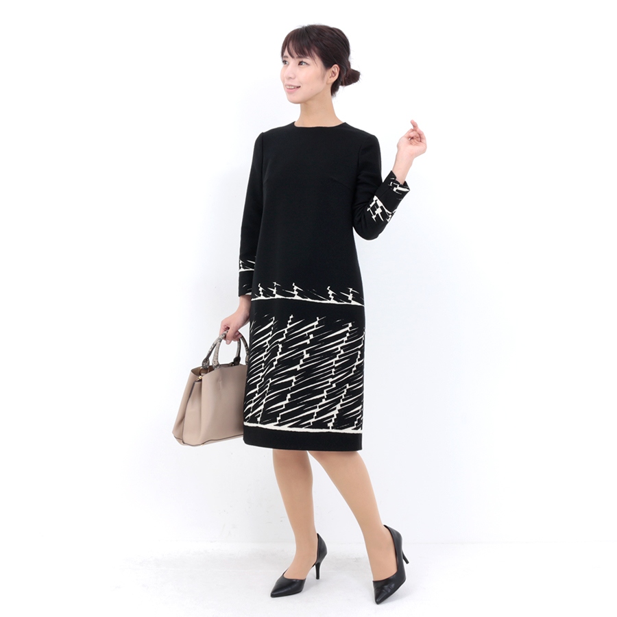 目上の方の前でもきちんとした印象で着こなせるワンピース。黒ですっきりしたシルエット。