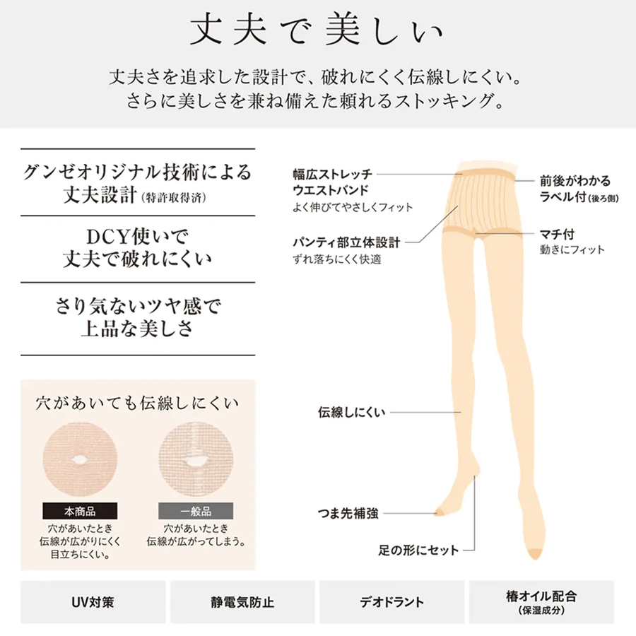 ★スタッフコメント★"丈夫さを追求した設計で、破れにくく伝線しにくいストッキング。ツヤ感のある上品な美しさがポイントです。※ナチュラルベージュとヌードベージュの二種類の取り扱いがございます。 ナチュラルベージュ…やや赤みのあるベージュ ヌードベージュ…やや黄みよりのベージュこちらはナチュラルベージュの販売ページです。 ※こちらの商品はレビューのご記入をいただきましても、レビューポイントの付与ができません"