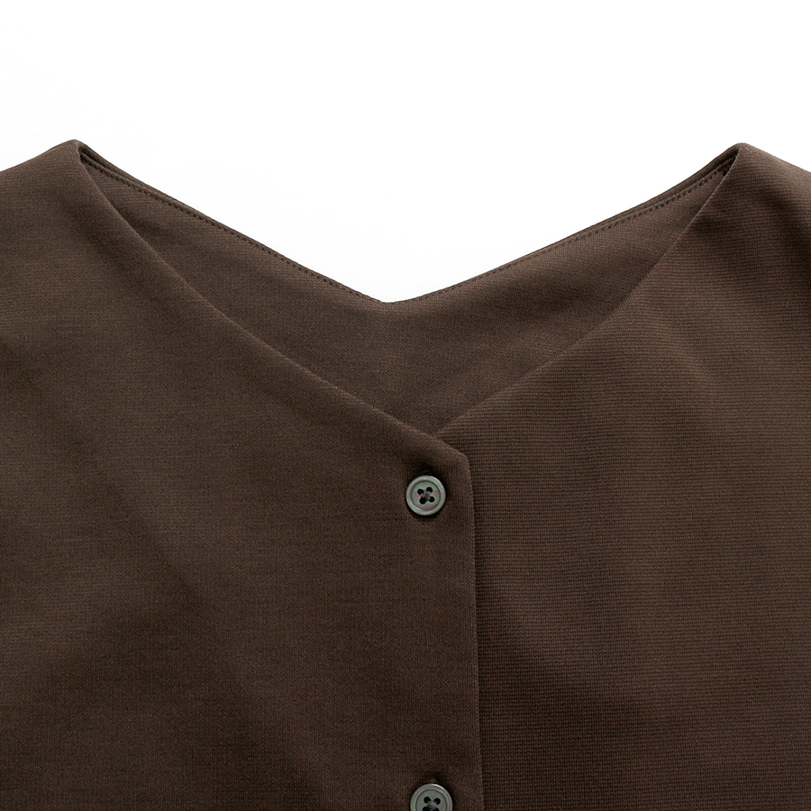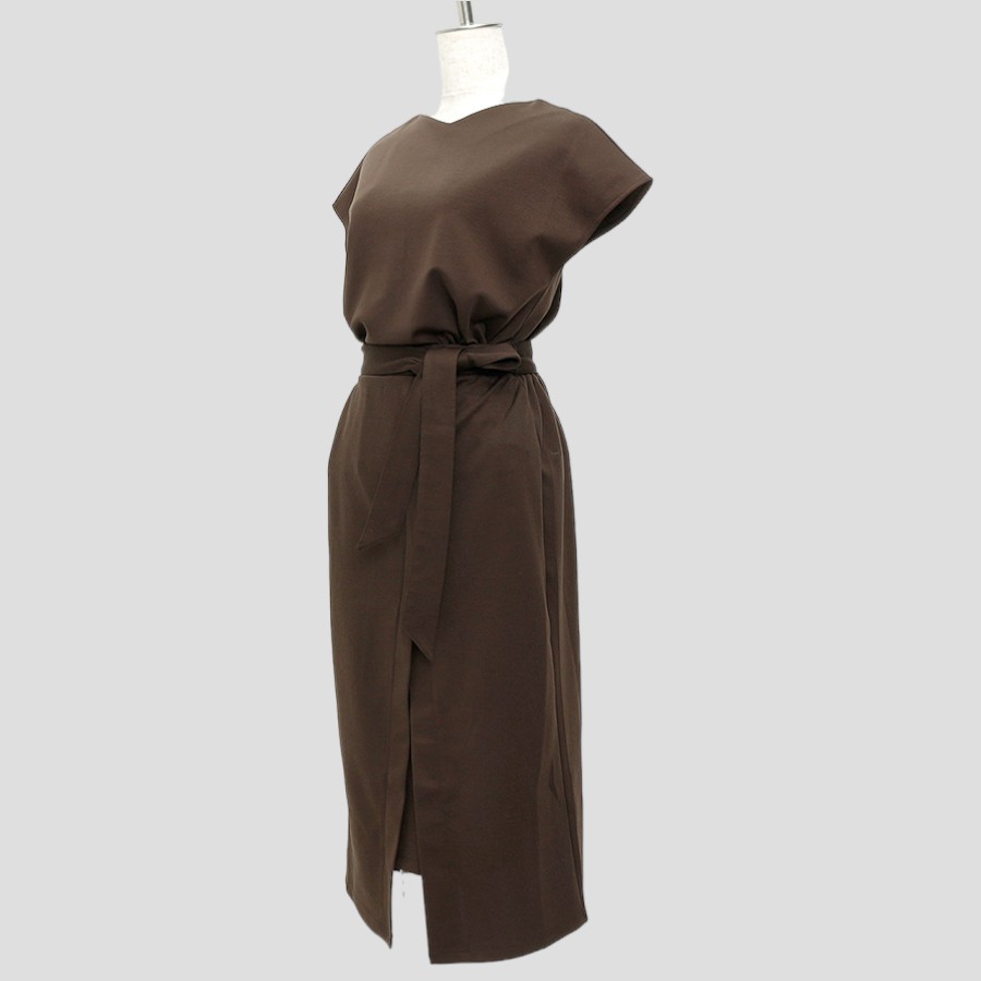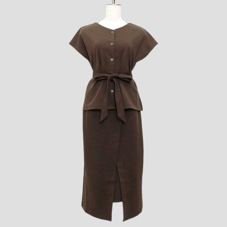★スタッフコメント★キレイ目カジュアルなセットアップワンピース。トップスは前後どちらでも着用可能な2WAY仕様。スカートはラップ風デザインで、後ろ部分がゴム仕様となっています。上下それぞれがシンプルなデザインで、着回し力は抜群。ジャージー素材で動きやすく快適な着心地。UVカット・吸水速乾・接触冷感の機能的なのも嬉しいポイントです。