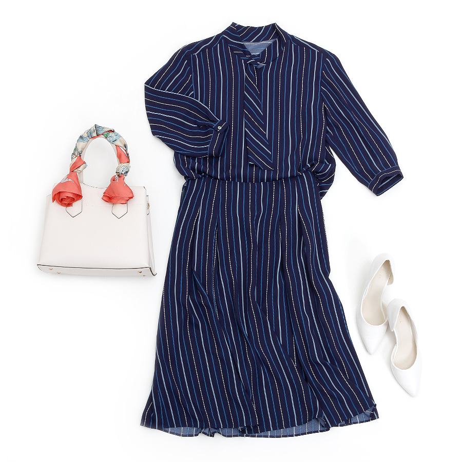 ストライプジョーゼットセットアップ(Mサイズ / ネイビー / TRANS WORK(トランスワーク))