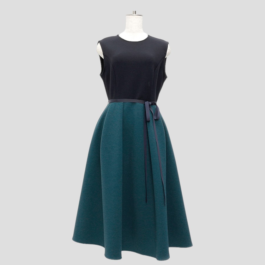 バイカラーワンピース(Mサイズ / ネイビーxジェイドグリーン / Pont Neuf(ポンヌフ)) [付属品 1点:リボンベルト]