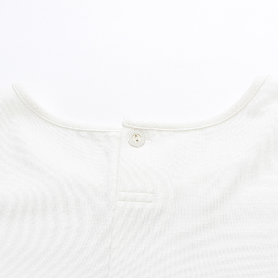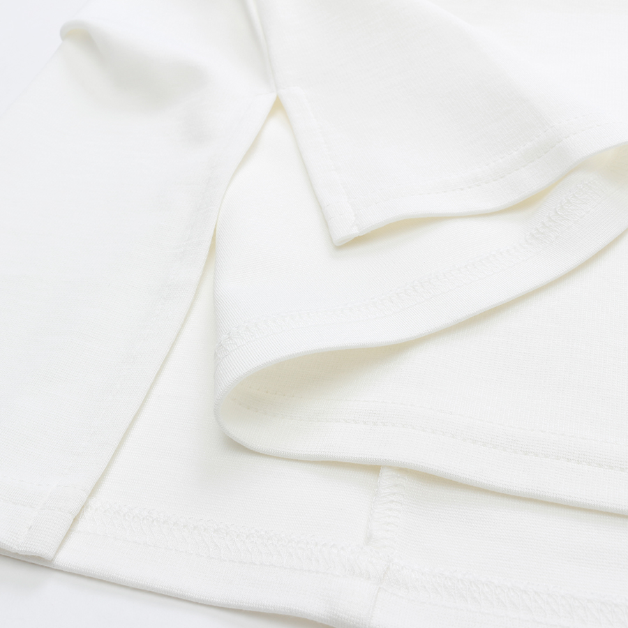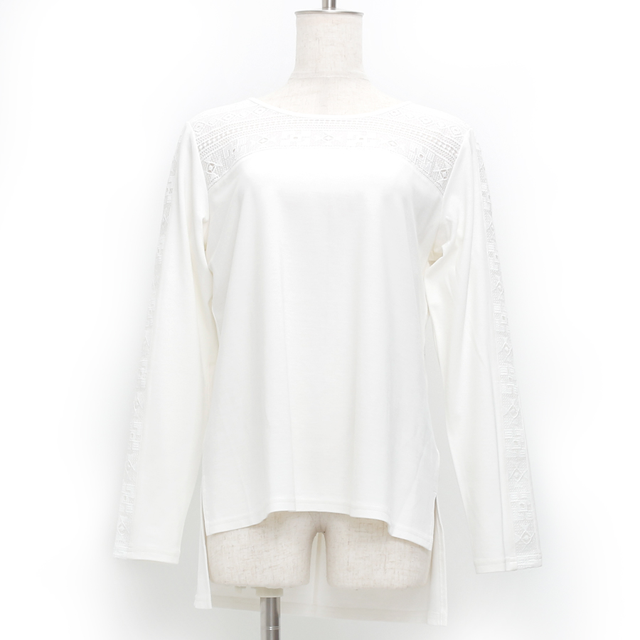 スリット入りのトップス裾は後ろが長めのデザインになっています。