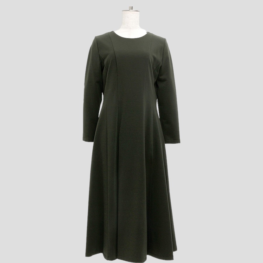 ウエストラインから緩やかに広がるフレアスカートで落ち着きのある上品な雰囲気です。