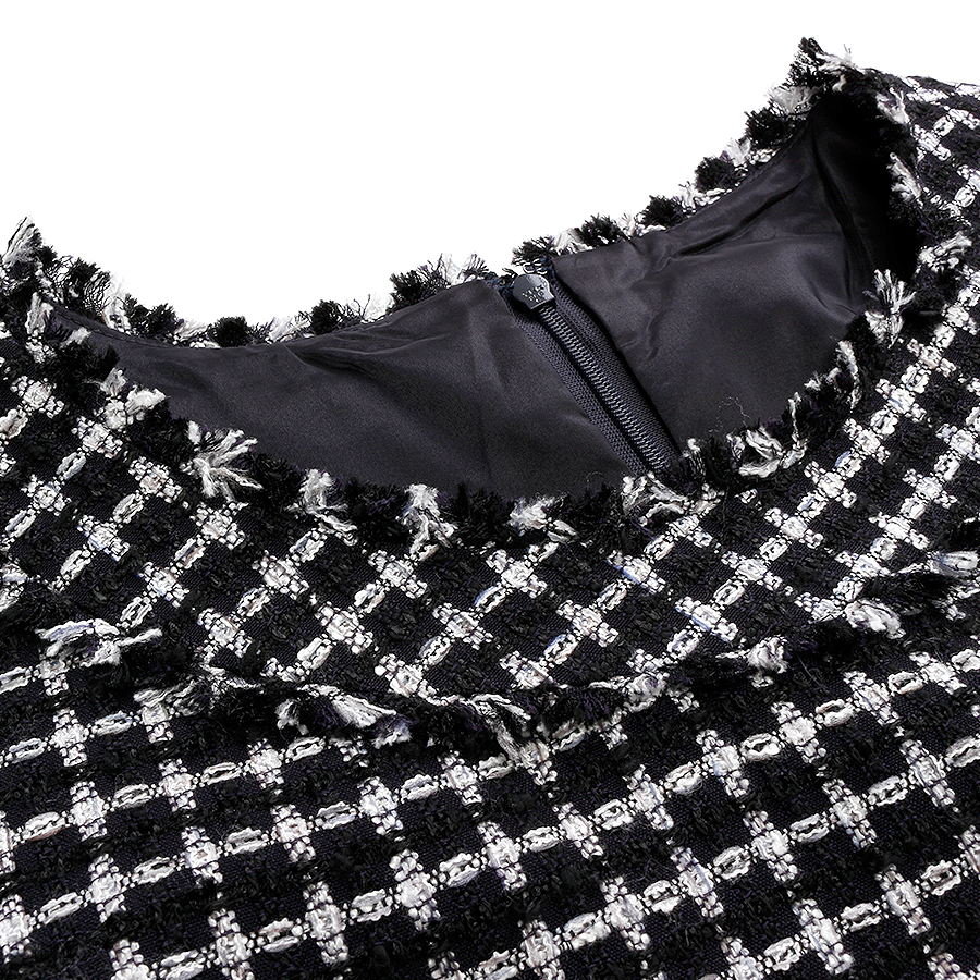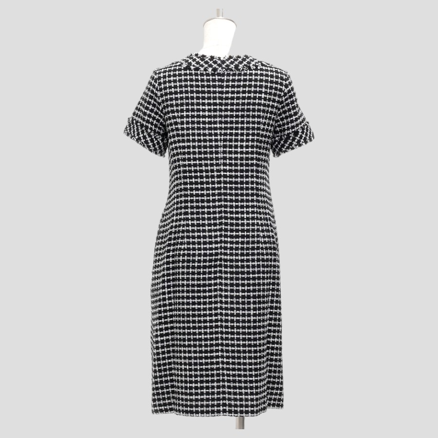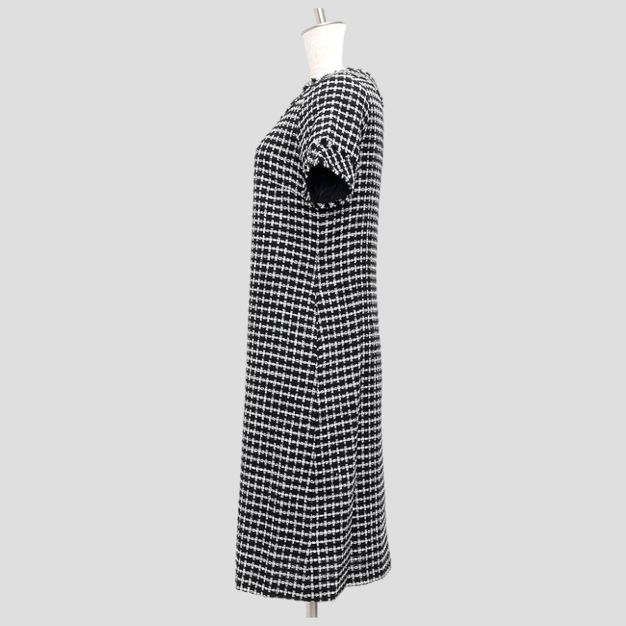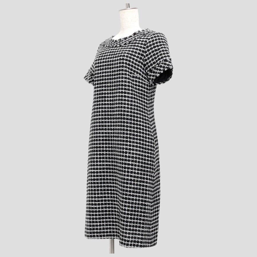 暖かみのあるツイード素材のワンピース。