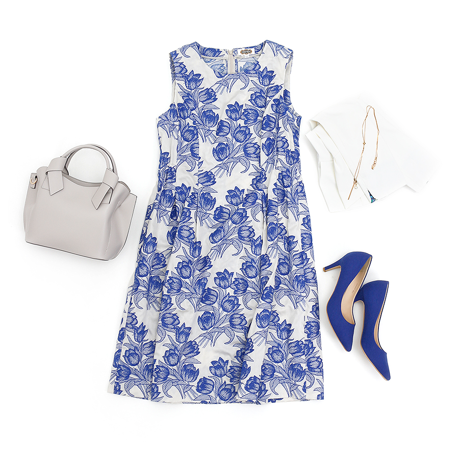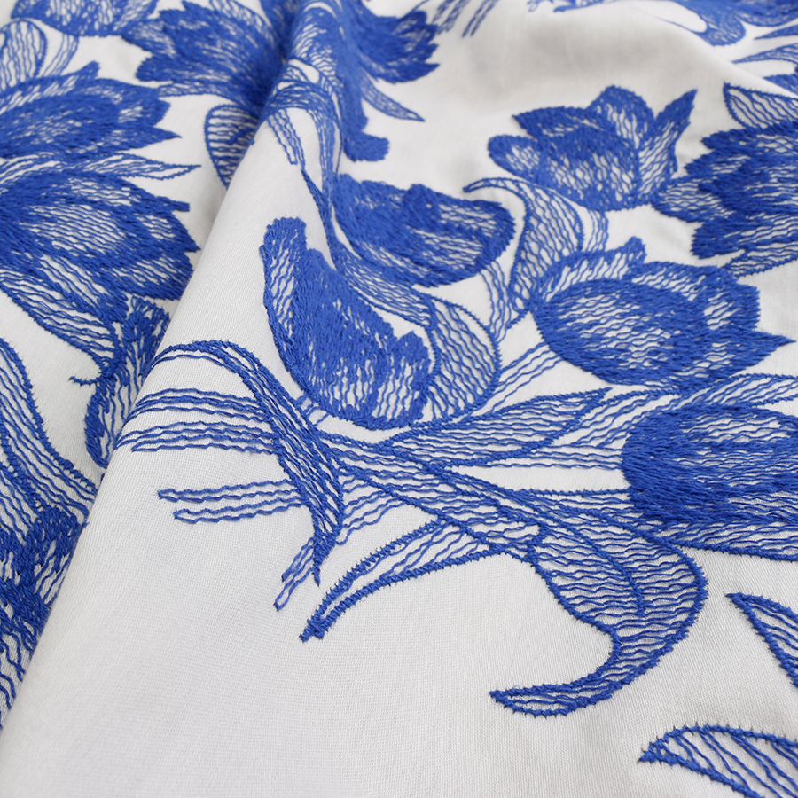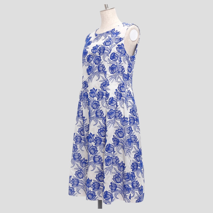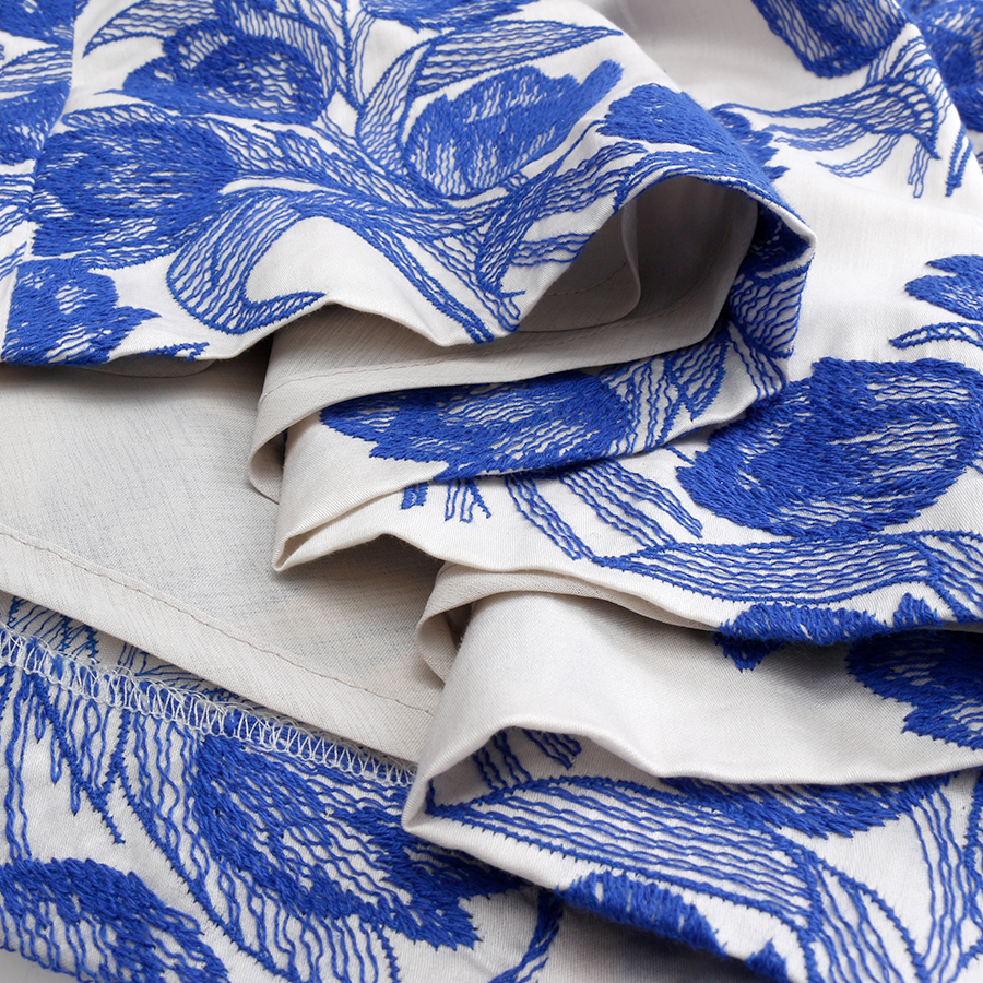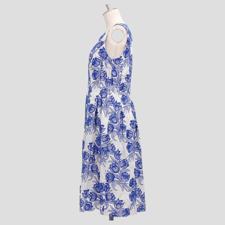 ナチュラルなコットン生地にチューリップ柄の刺繍が映えるワンピース。