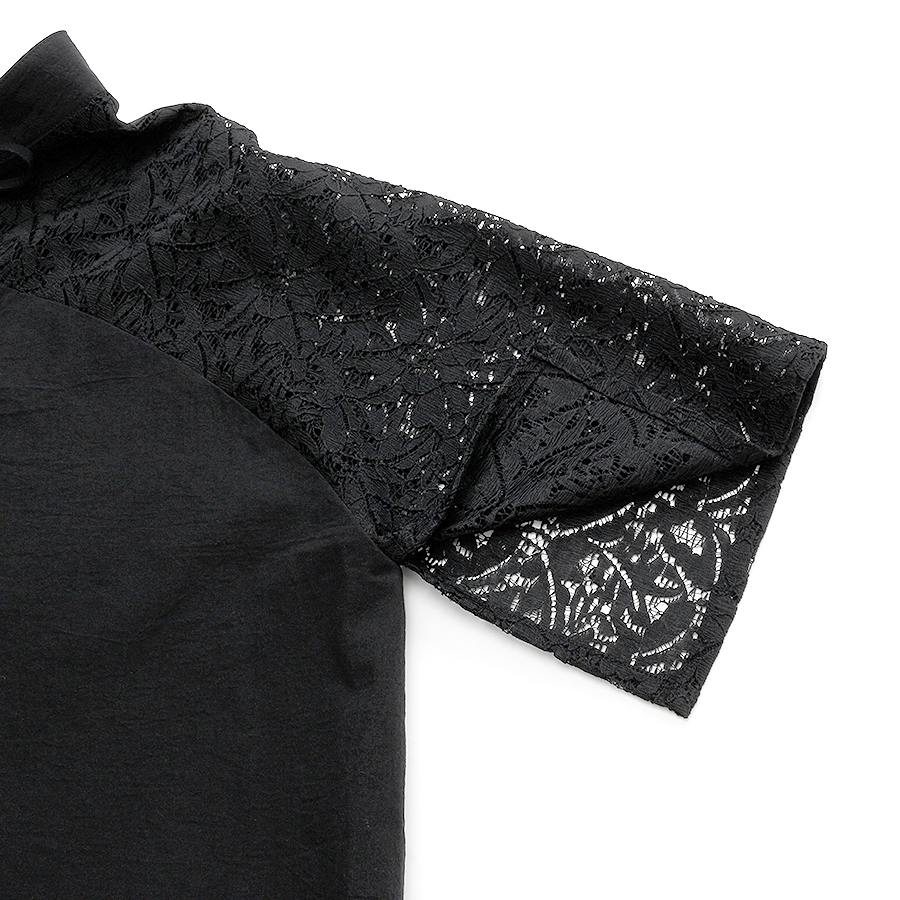 トップスの袖部分と片面デコルテ部分はレース素材となっていて透け感がございます。