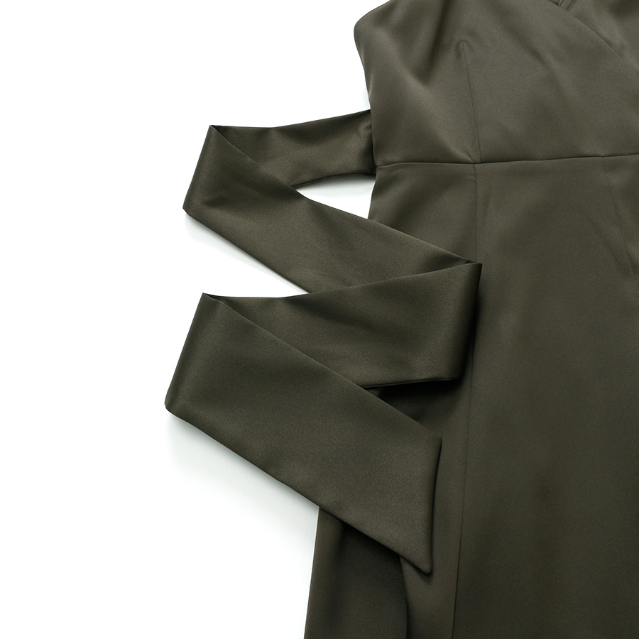 ロング丈で気になるボディラインを上手にカバーし、バックスタイルのリボンでエレガントさをプラス。