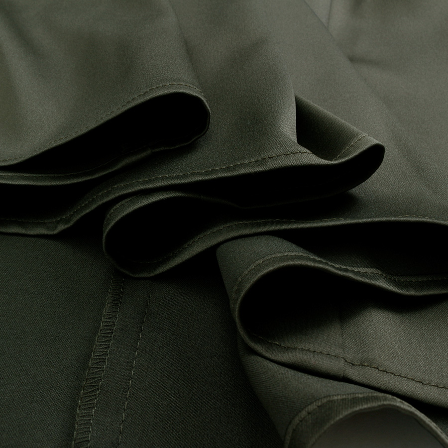少しハリのある生地で光沢を感じるカーキ色が秋にぴったりです。インナーやアウターを変えて変化を楽しめます。158センチで丈も丁度良い感じでした。