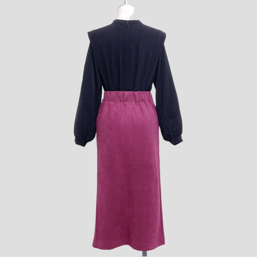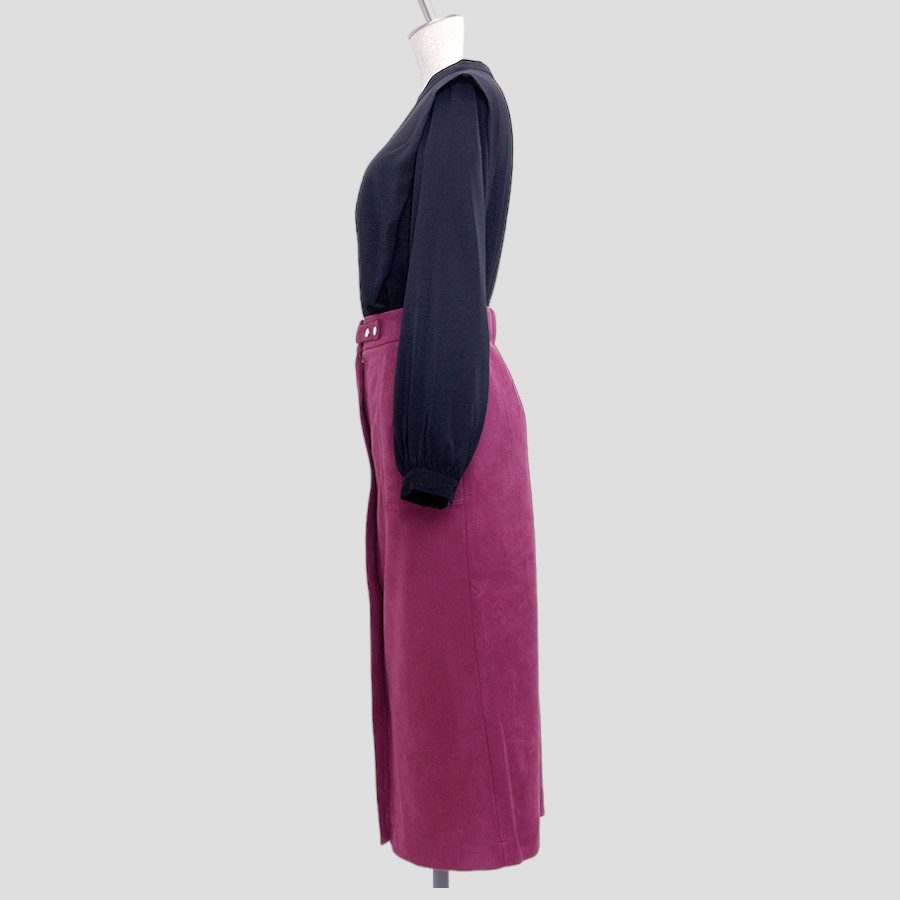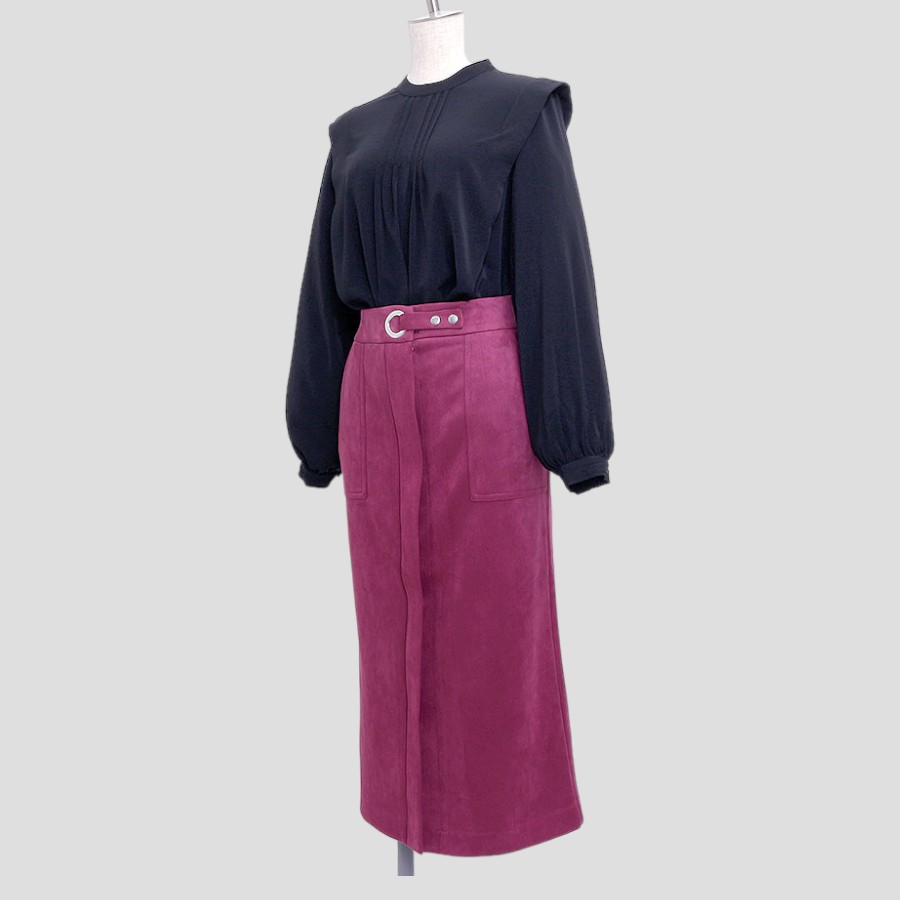 スカートは柔らかく起毛感のあるスェード風の手触りであたたかみのある素材。
