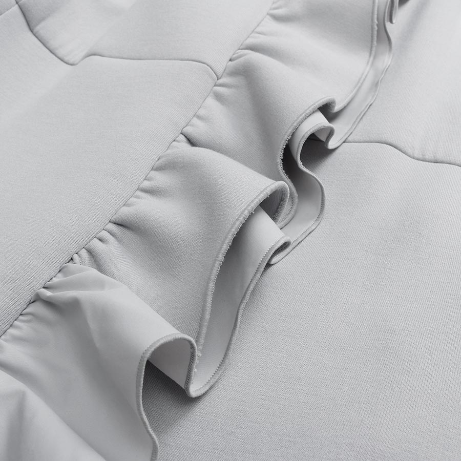 スポンディッシュな膨らみと柔らかさが特徴の生地で、大人かわいい雰囲気です。