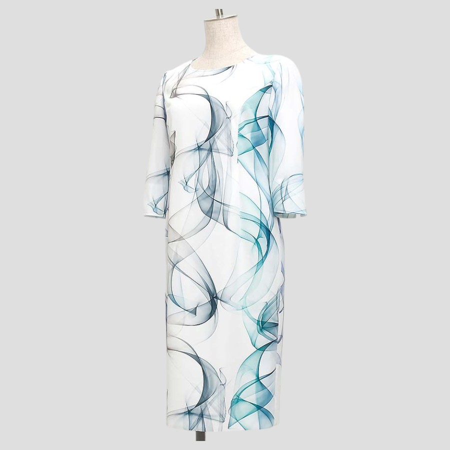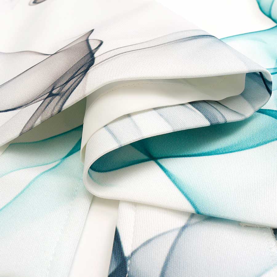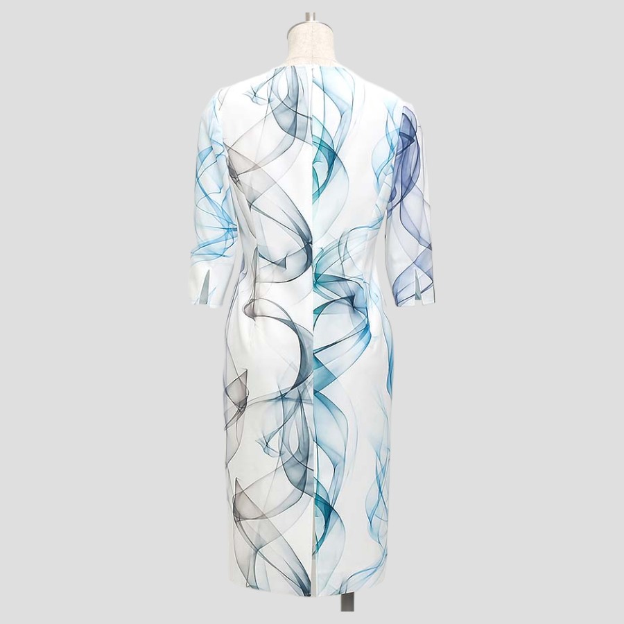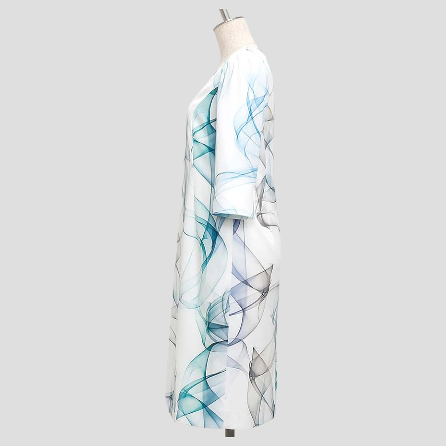 立体感のあるグラデーションリボンプリントが特徴的なワンピース。