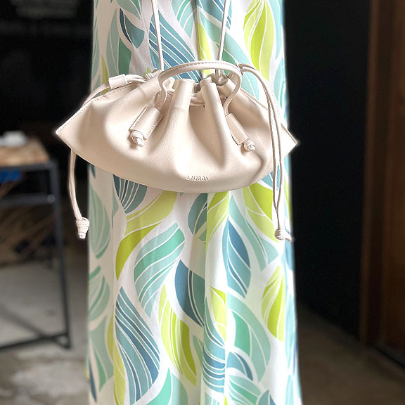 ★スタッフコメント★手持ちと斜め掛けどちらも使えるコンパクトなシャーリング2wayバッグ。しなやかなフェイクレザーで今のムードにマッチする軽い仕上がり。ショルダーは内側でループを結ぶことで長さの調節が可能。開口部はストッパー付きで間口をしっかりと固定。マチを広げると立体的になり、長財布や横向き500mlペットボトルが収納可能に。