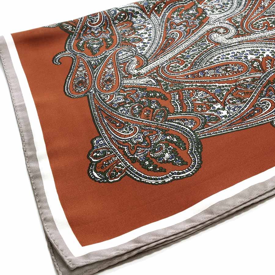 ★スタッフコメント★ペイズリー柄のスカーフ。程よい光沢がある上品な素材。首元に巻くだけで無地のお洋服も華やぎます。バッグの持ちてに巻いて、こなれた雰囲気も。コーディネートがしやすい主張しすぎない色味。