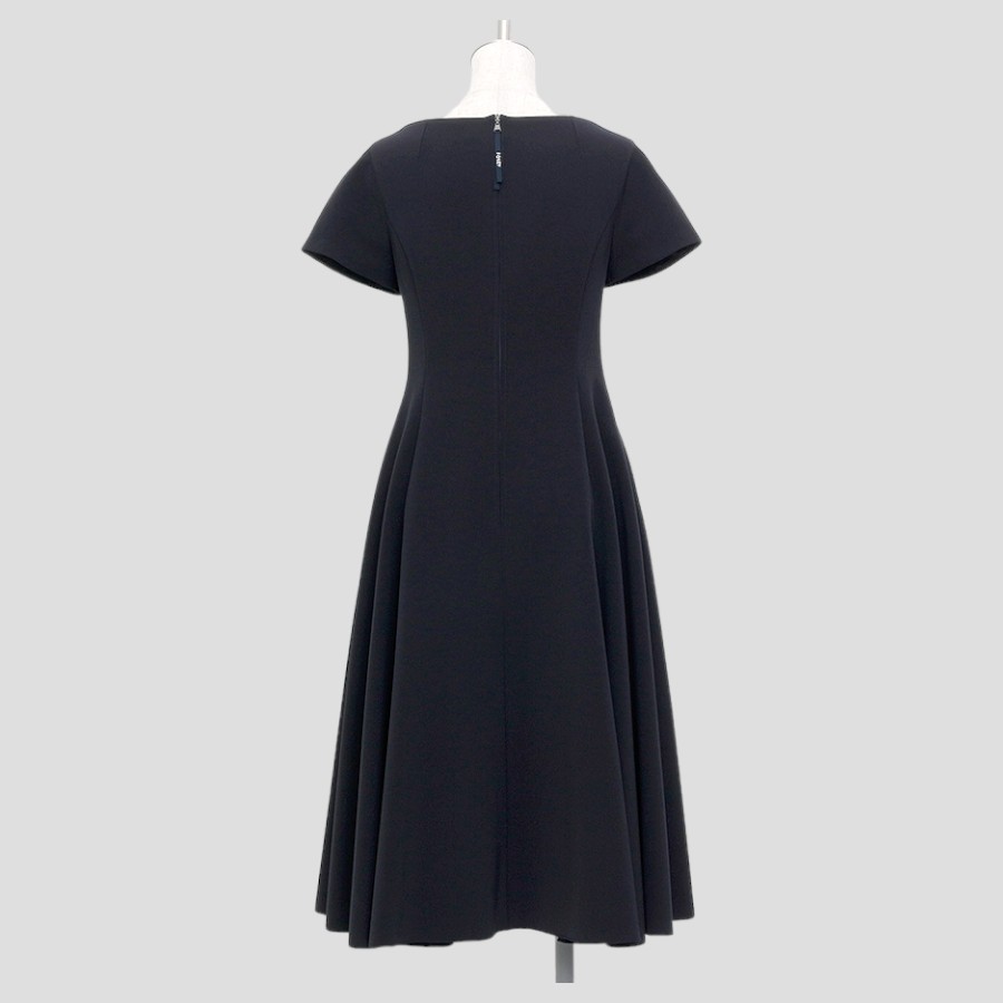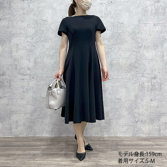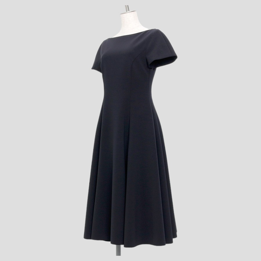 ボートネックラインの品格が溢れるワンピース。