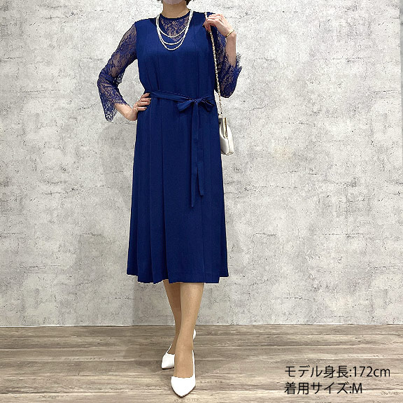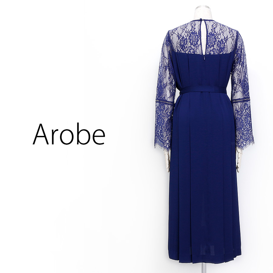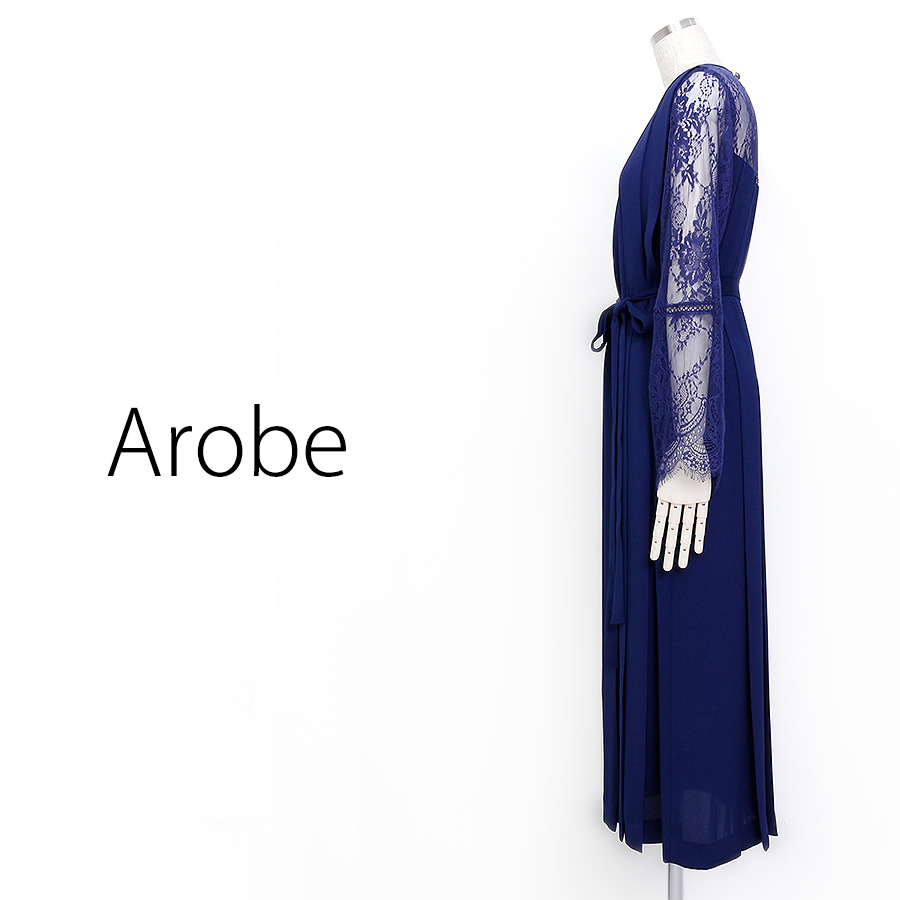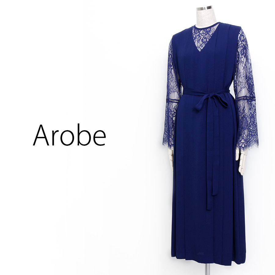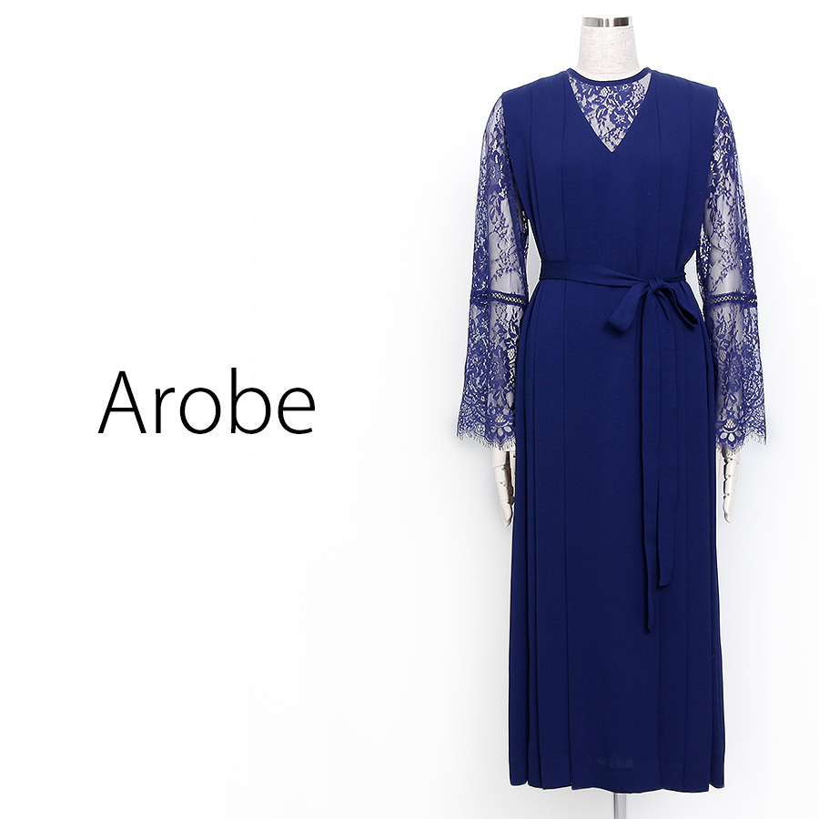 Mix Lace Pleats Dress(Mサイズ / ブルー / Arobe(アローブ)) [付属品 1点:リボン]