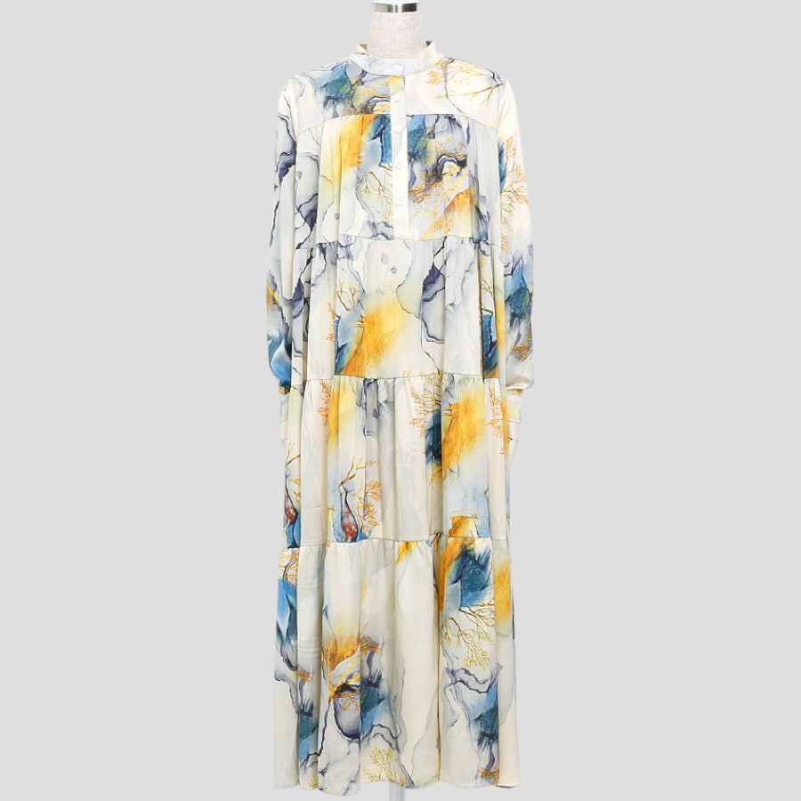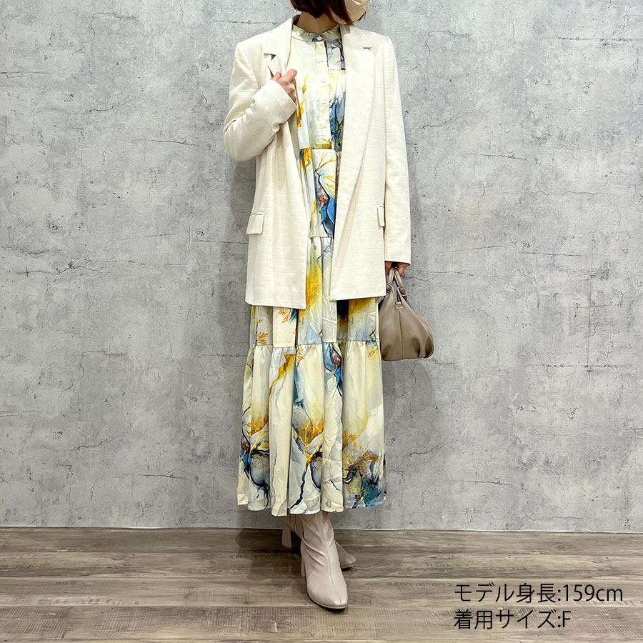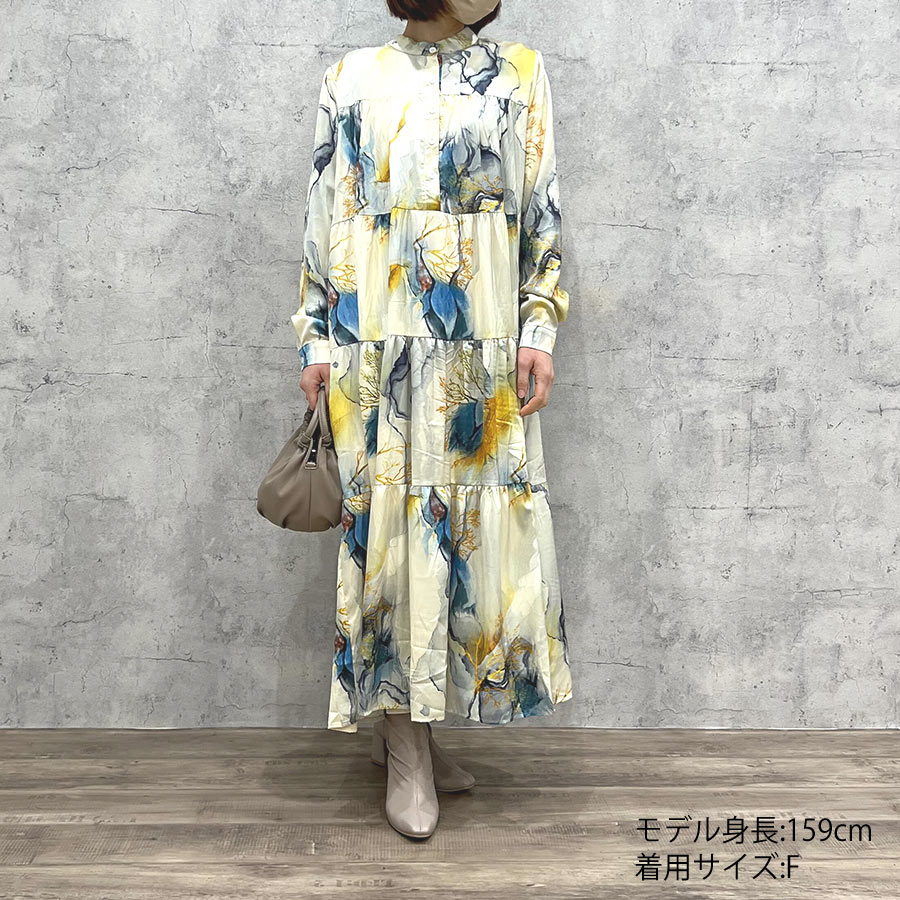 ペイント柄ティアードワンピース(Fサイズ / ベージュ / LHELBIE(レルビエ))