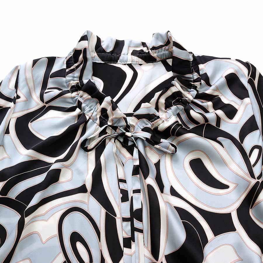 胸元を華やかに魅せるギャザーはリボンで調節が可能。
