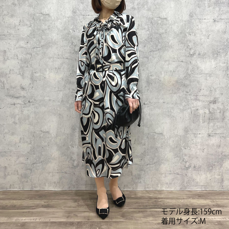 下に黒の細身のパンツを合わせて、シャツワンピースのように着ました。大胆な柄でもそんなに派手に感じない素敵なワンピースでした。