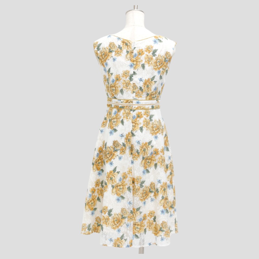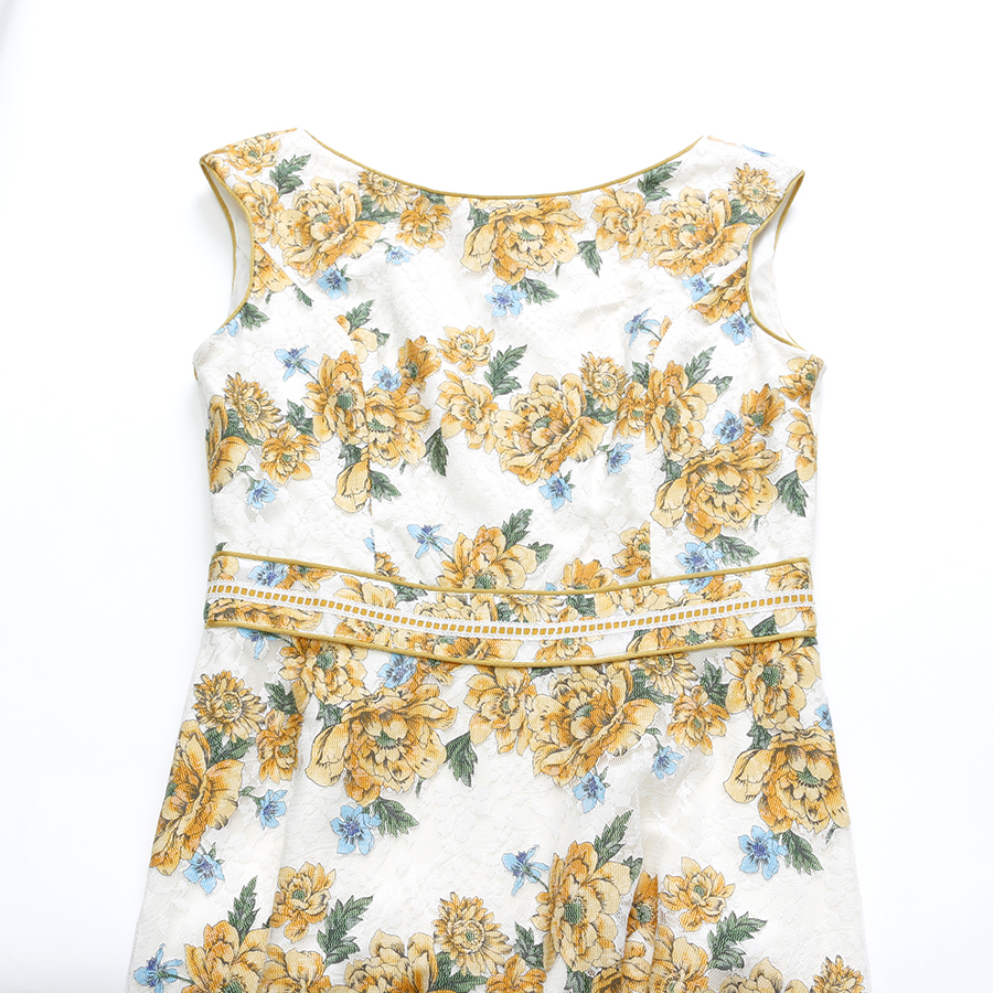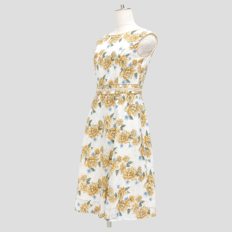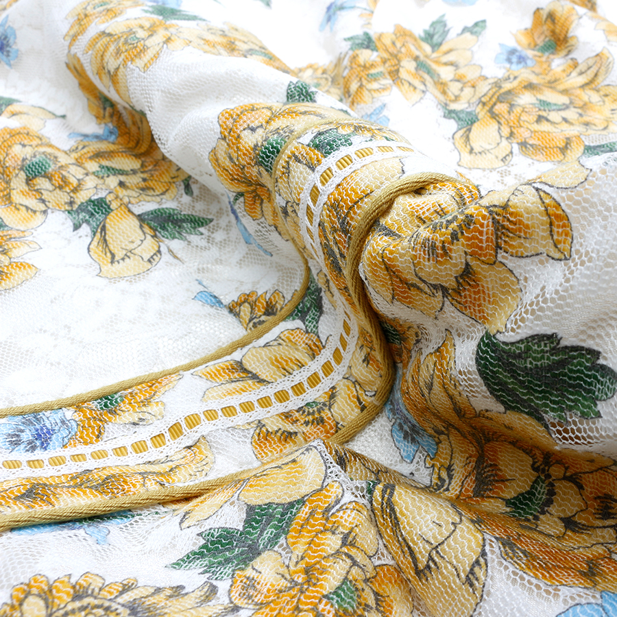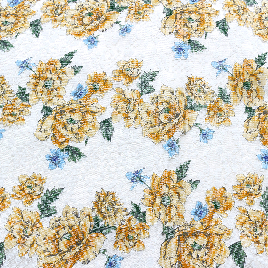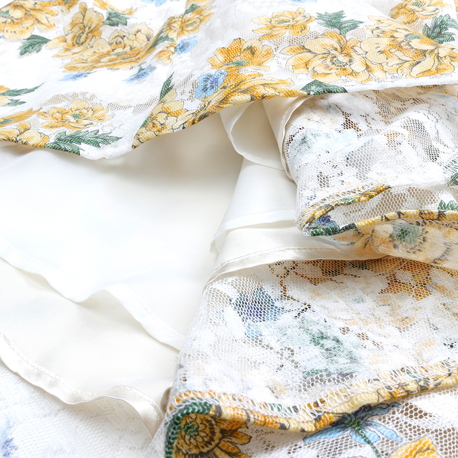 程よい透け感のあるレース生地に花柄のプリントを全面使用。