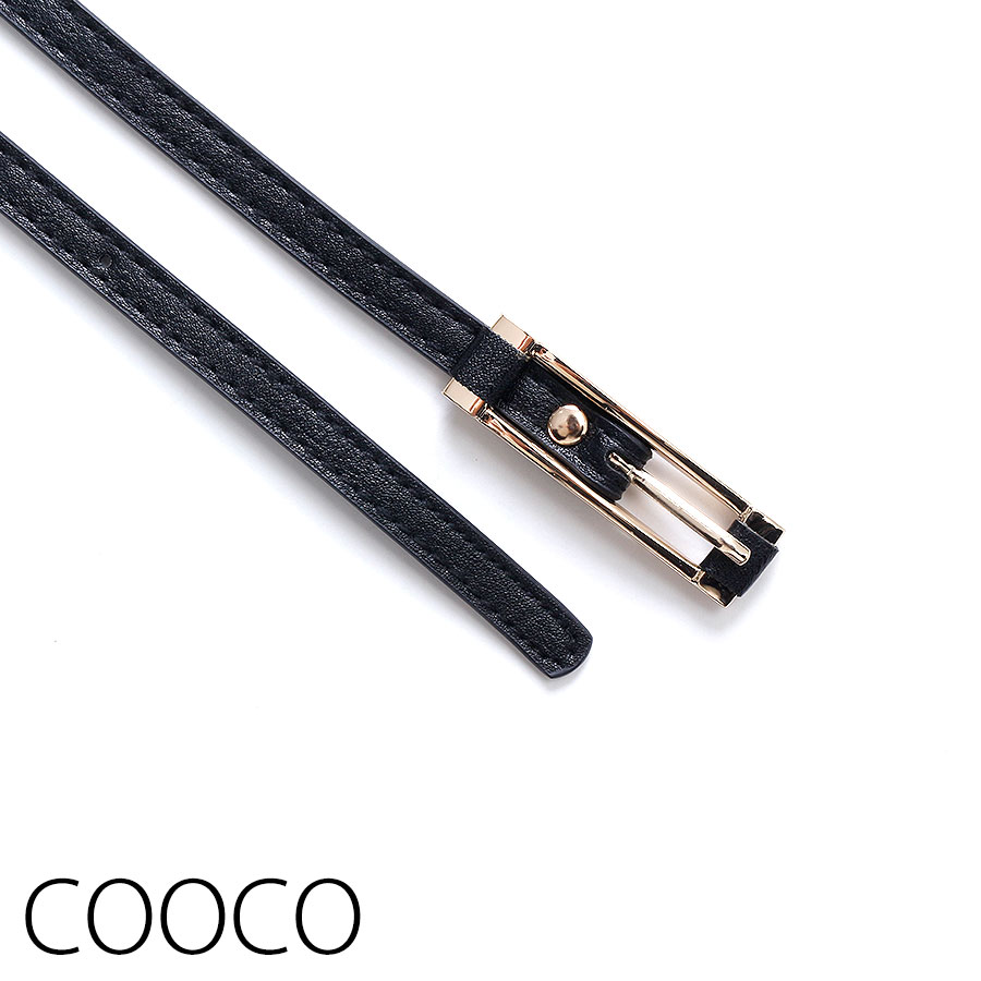 ★スタッフコメント★コーディネートを引き締めてくれる細幅のブラックベルト。ゴールドのスクエアバックルがポイント。7つのピンホールは2.5cm間隔。きれいめにもカジュアルにも活躍するアイテム。※こちらはカットでのサイズ調節はできません。