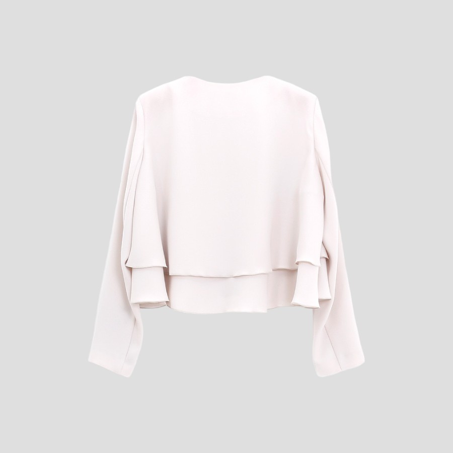 ・身頃が2重仕立てになっていて、体の動きに合わせてひらひらと揺れて女性らしい柔らかなニュアンスのジャケットです