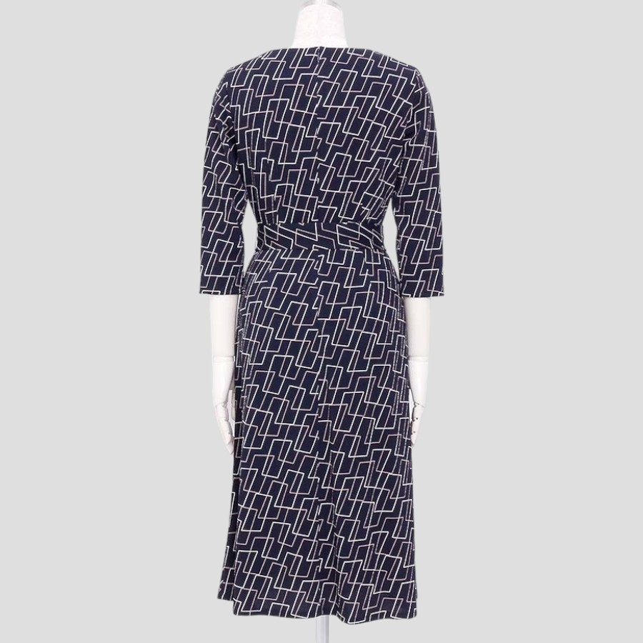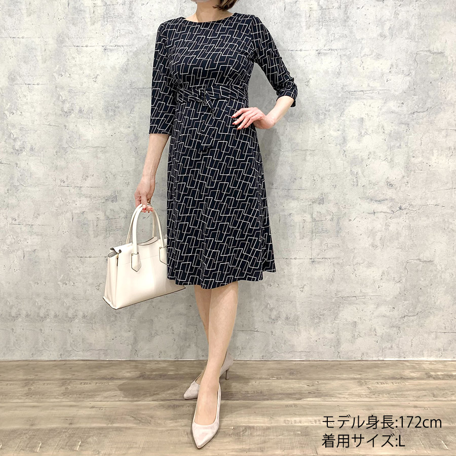 幾何柄プリント ジャージ素材ワンピース(Lサイズ / ネイビー / COUP DE CHANCE(クードシャンス)) [付属品 1点:ベルト]