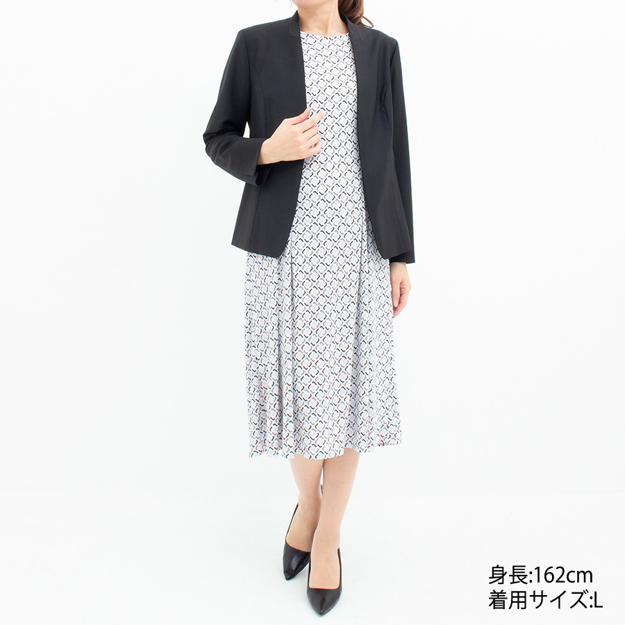 シワの心配がなく、ジャケットを羽織り、仕事に使いやすいワンピースです。