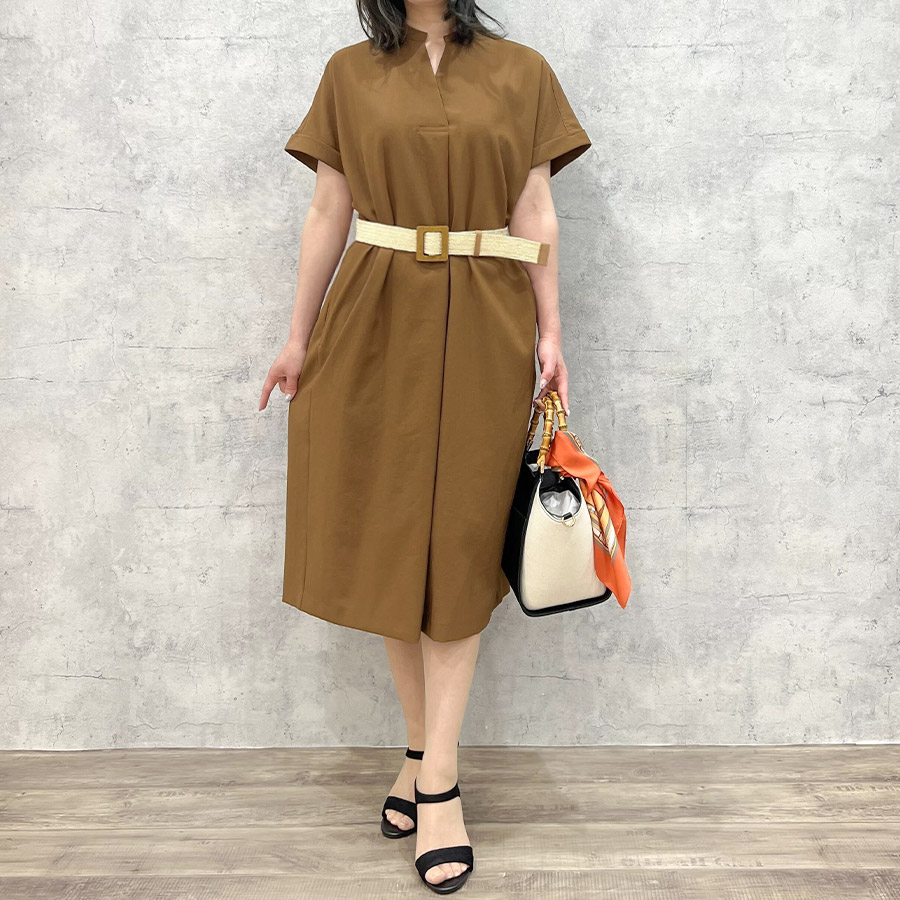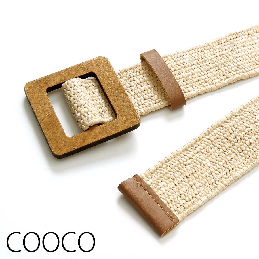★スタッフコメント★ゴムが織り込まれた涼し気なウッドバックルベルト。ベルトループ付きでサイズ調整がスムーズ。コーディネートに馴染みむベーシックカラー。夏のお出掛けにぴったりなアイテム。