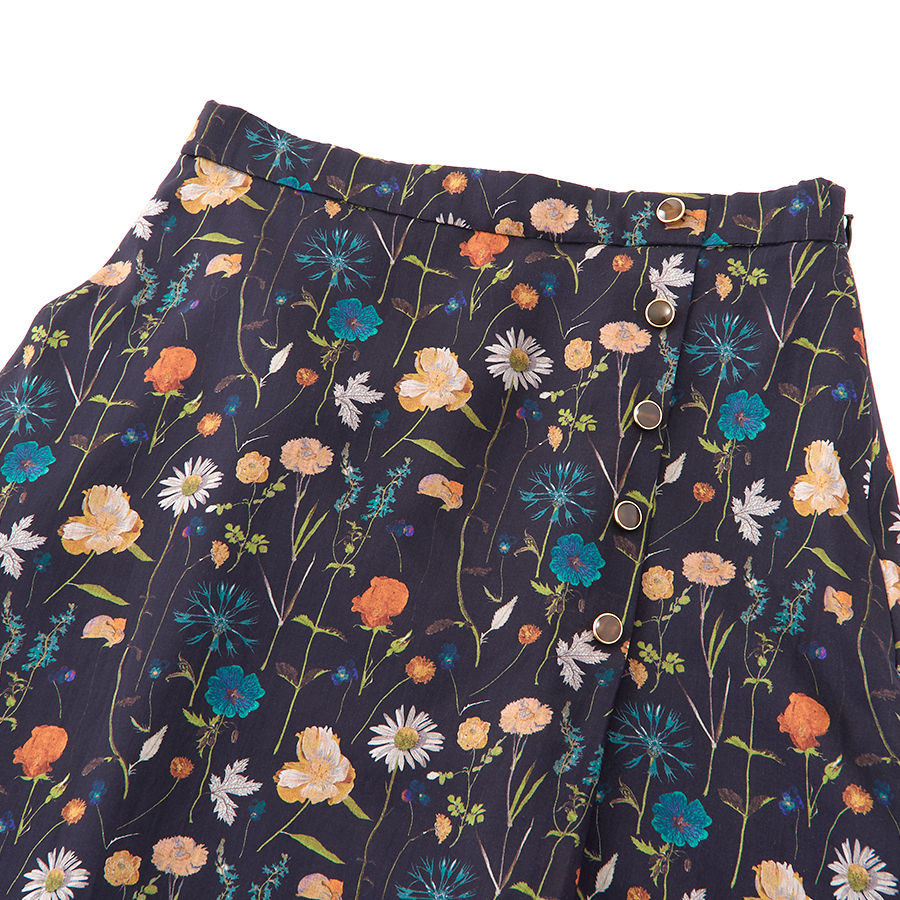 レトロ感漂うリバティの花柄が大人可愛いスカート。