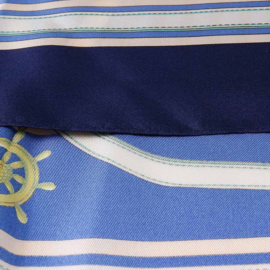 ★スタッフコメント★絹100%の生地を使用した日本製スカーフ。滑らかな肌ざわりと上品な光沢感が特徴。夏におすすめのマリン柄プリント。首元に巻くのはもちろん、バッグの持ちてに巻くだけでもスタイリングが華やぎます。※水洗いは出来ません。お手入れはドライクリーニングでお願いします。