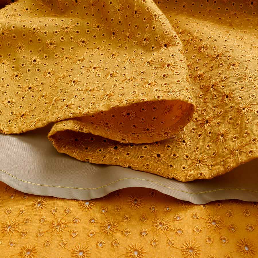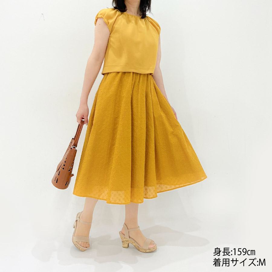 ワンピースはスカート部分にコットンレース素材をドッキング。