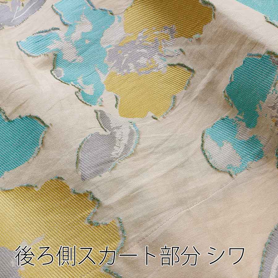 少し張りのある素材かつ後裾の長いフレアで華やかなシルエットになっております。